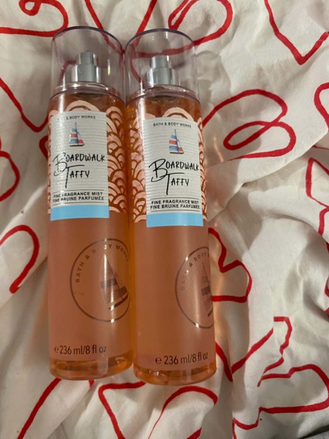 Two bottles of Bath & Body Works Boardwalk Taffy Fine Fragrance Mist. Each bottle is 236ml/8 fl oz. $10 for both or $5 each