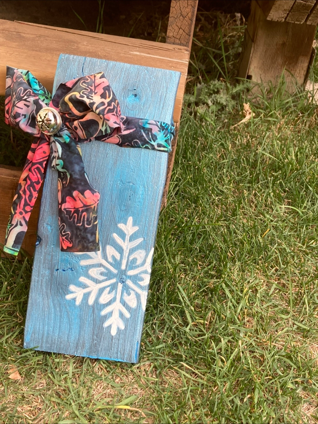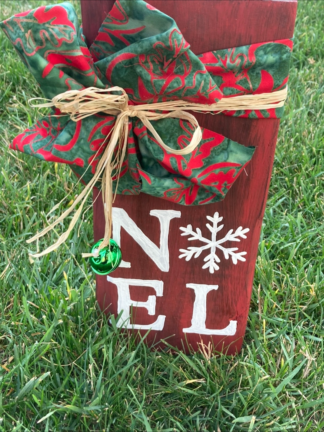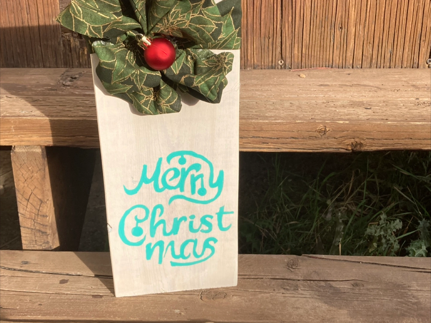 Three rustic wooden blocks. Christmas-themed designs. Each block features a unique design and fabric embellishment. Perfect for holiday decorating.