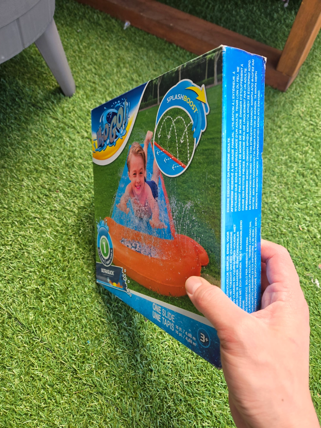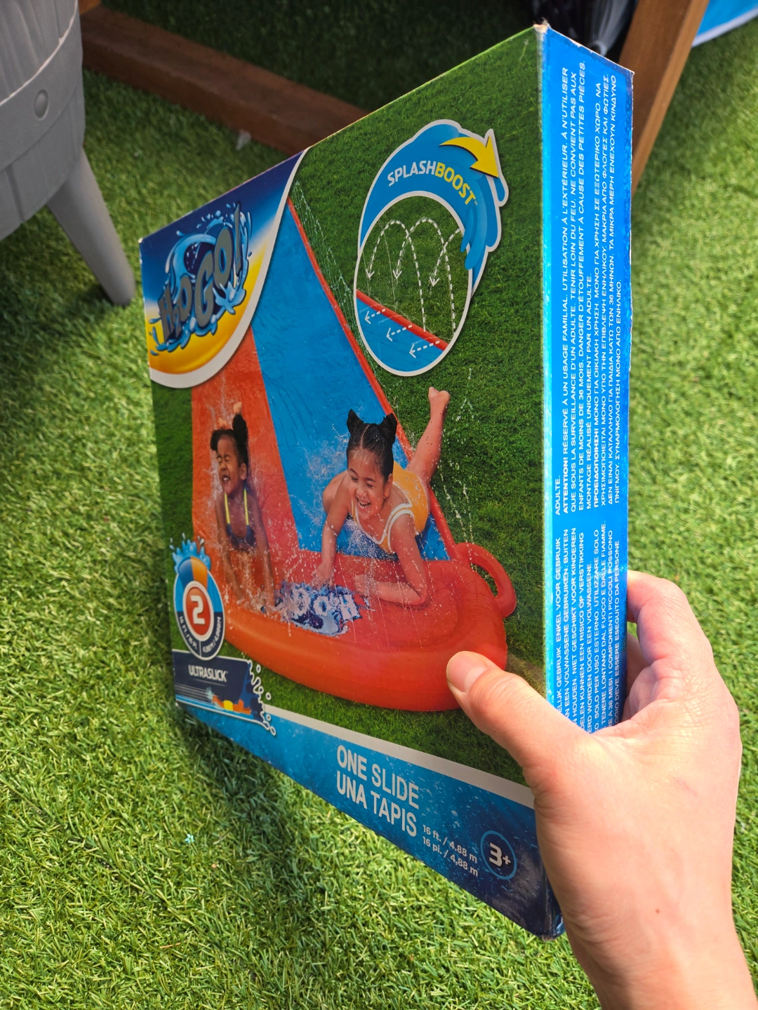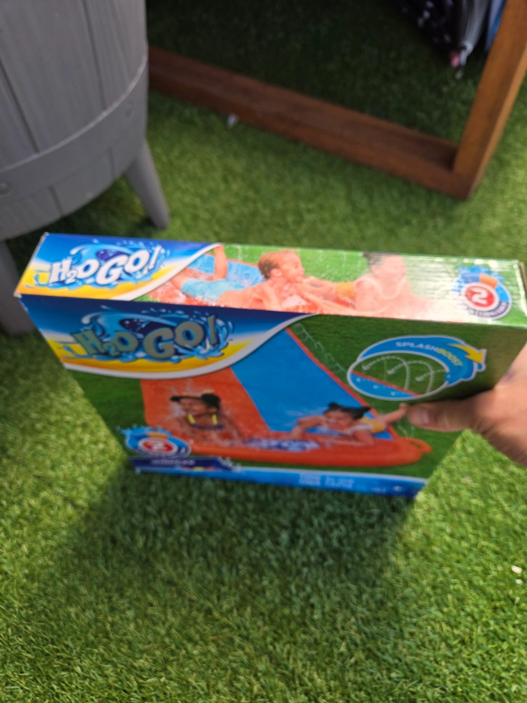 New in box. 16 ft/4.88 m long. Ages 3+. Features SplashBoost technology and ultraslick material. One slide. brand new in box sealed price firm pick up near 22nd skytrain new west