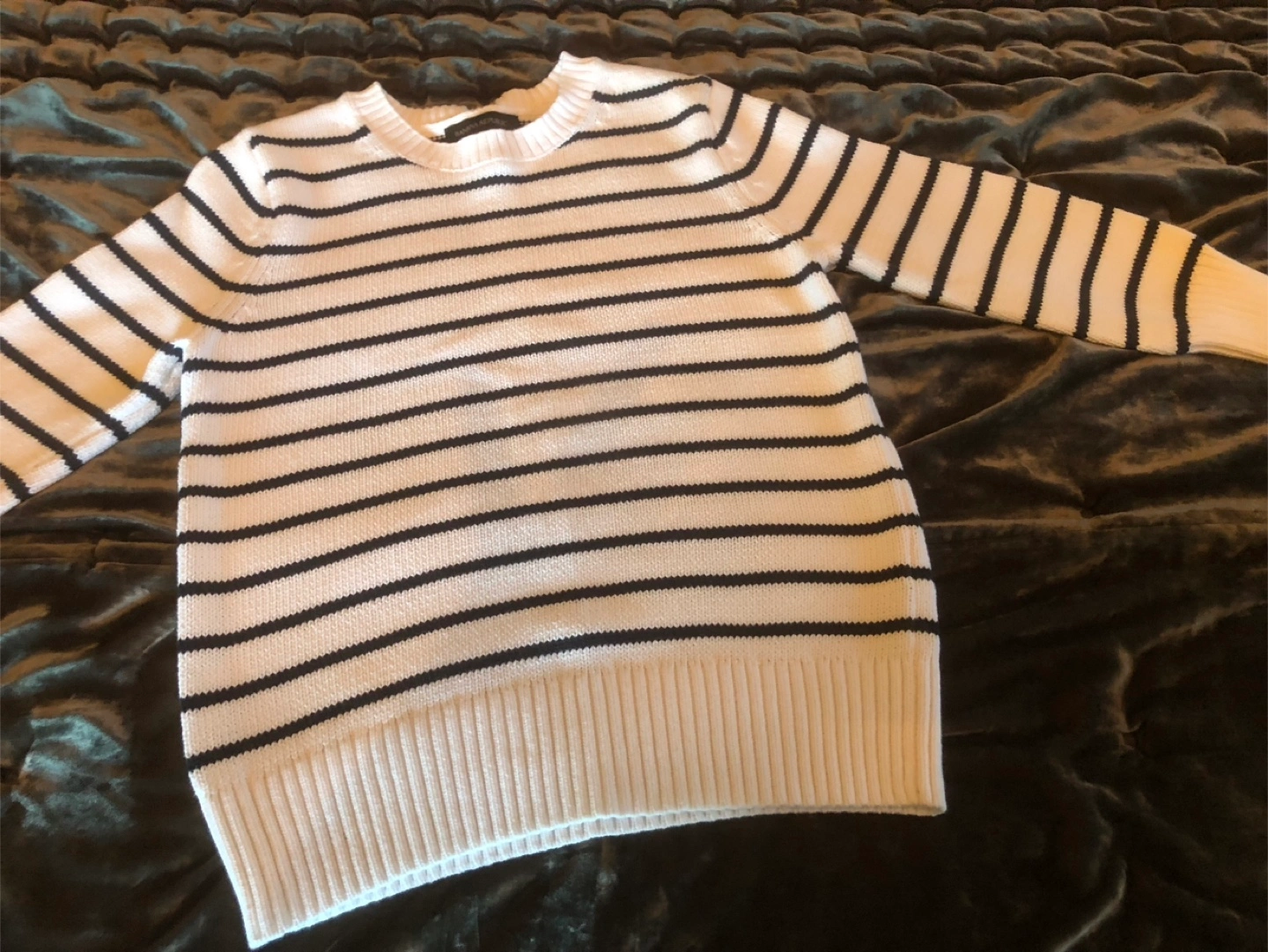 Banana Republic horizontally striped knit sweater. Long sleeves. Crew neck. Relaxed fit.
