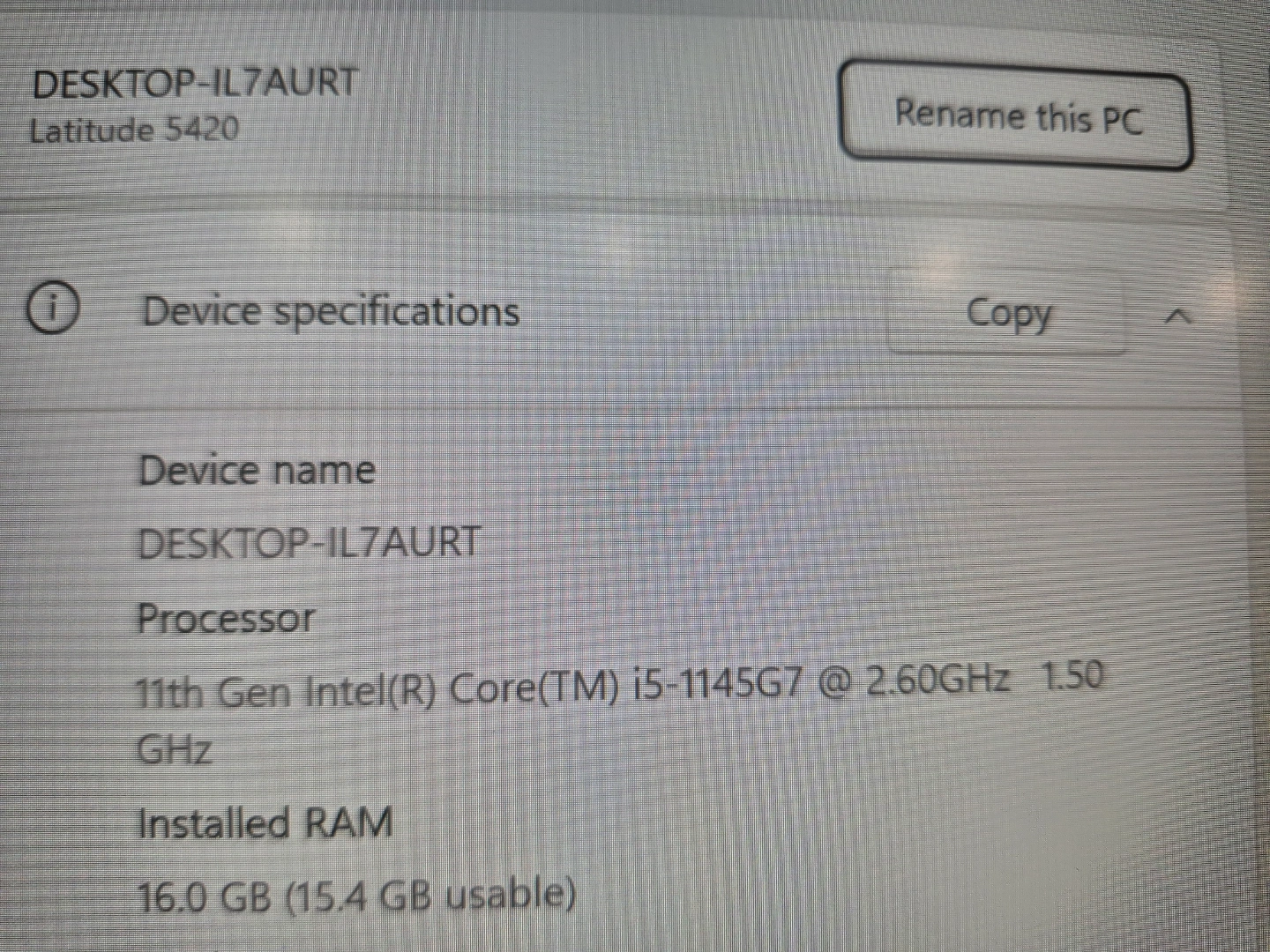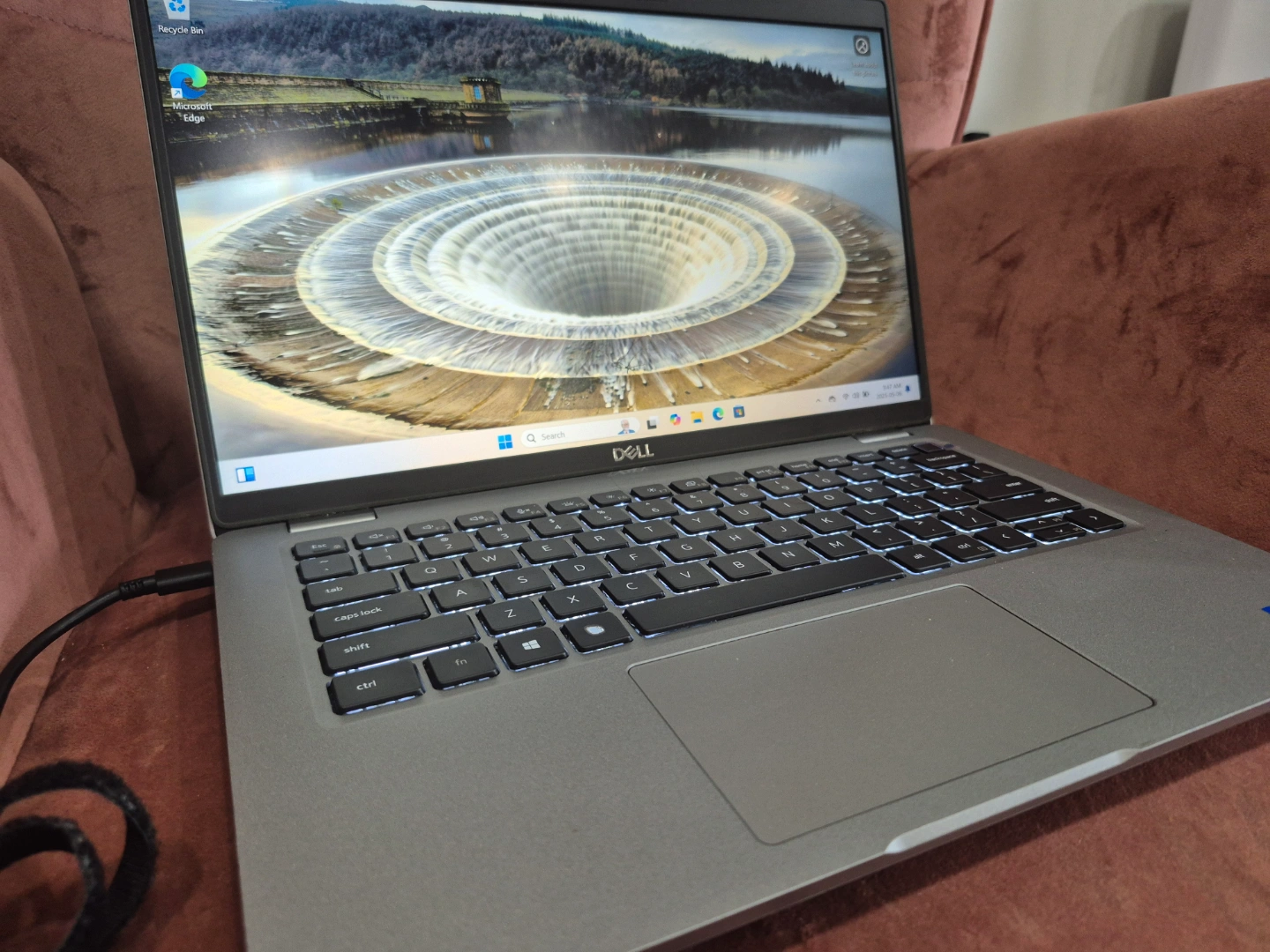 Dell Latitude 5420 touch screen laptop for sale. Features 11th Gen Intel Core i5 processor, 16GB of RAM, and a 512GB solid-state drive. Silver colour. Good condition. Windows 11 usb c charger
