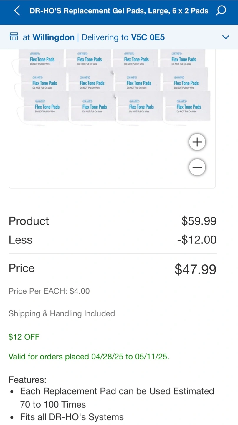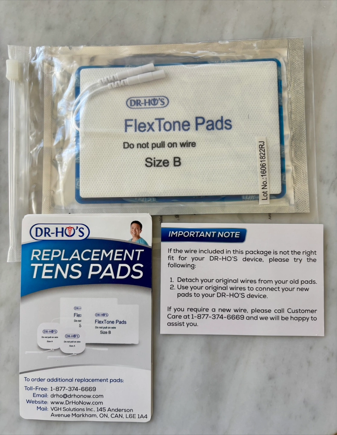 4 packs of DR-HO'S replacement TENS pads available. Size B. FlexTone pads. Fits all DR-HO's systems. New, unopened. $7 per pack (2 pads), or $20 for 3 packs (6 pads). I bought the 6 packs from Costco online a year ago at its regular price of $59.99+12% taxes ($11.20/pack). I’ve only been using one pack. So I won’t need all of them for years. Costco’s current sale price (only until May 11, 2025, see last pic) is about $9/pack including taxes. Click on my name and scroll down to see my other listings and pickup locations.
