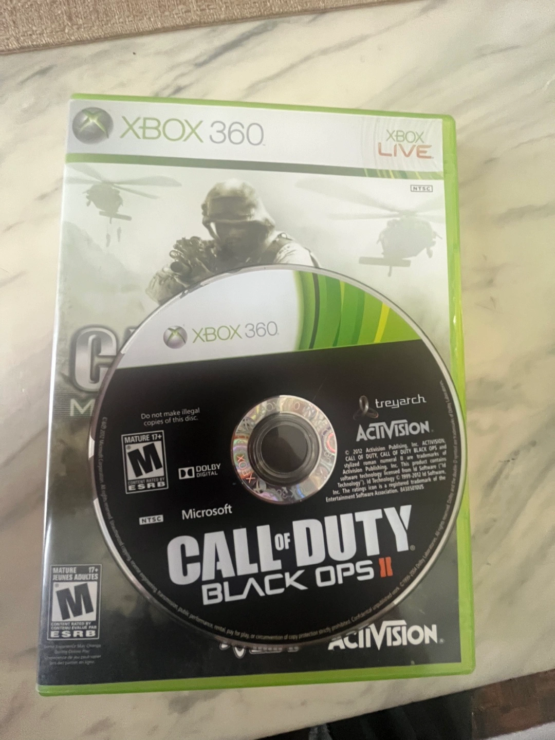 Three pre-owned Xbox 360 games. Call of Duty: Modern Warfare 4, Call of Duty: Black Ops II, and NHL 13. Discs and cases included. Sold as a bundle. 1=15$