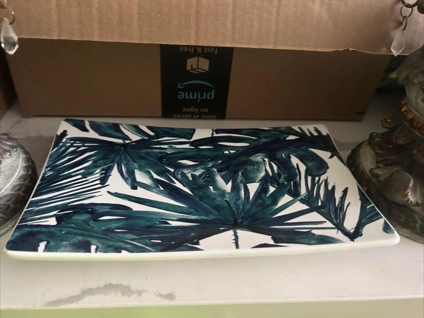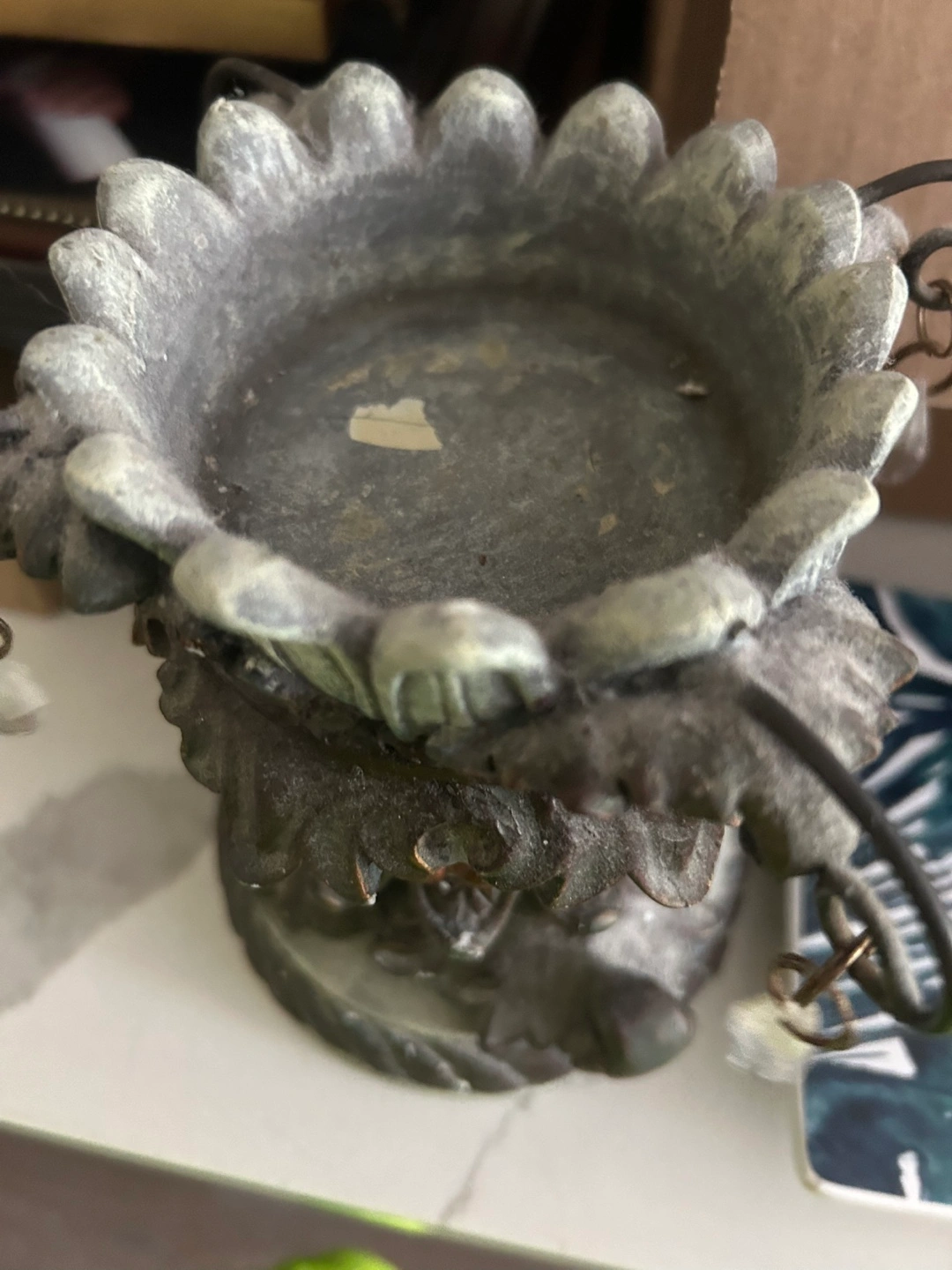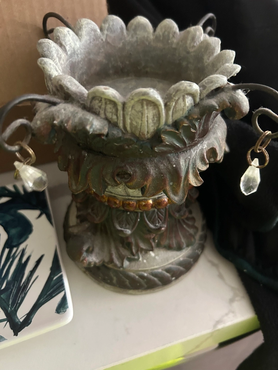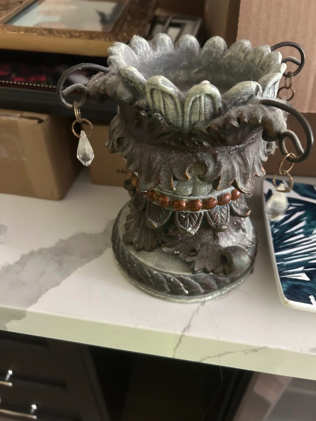 candle holder, grey and brown colour scheme. Features crystal accents. Set of 2 and plate if you want it