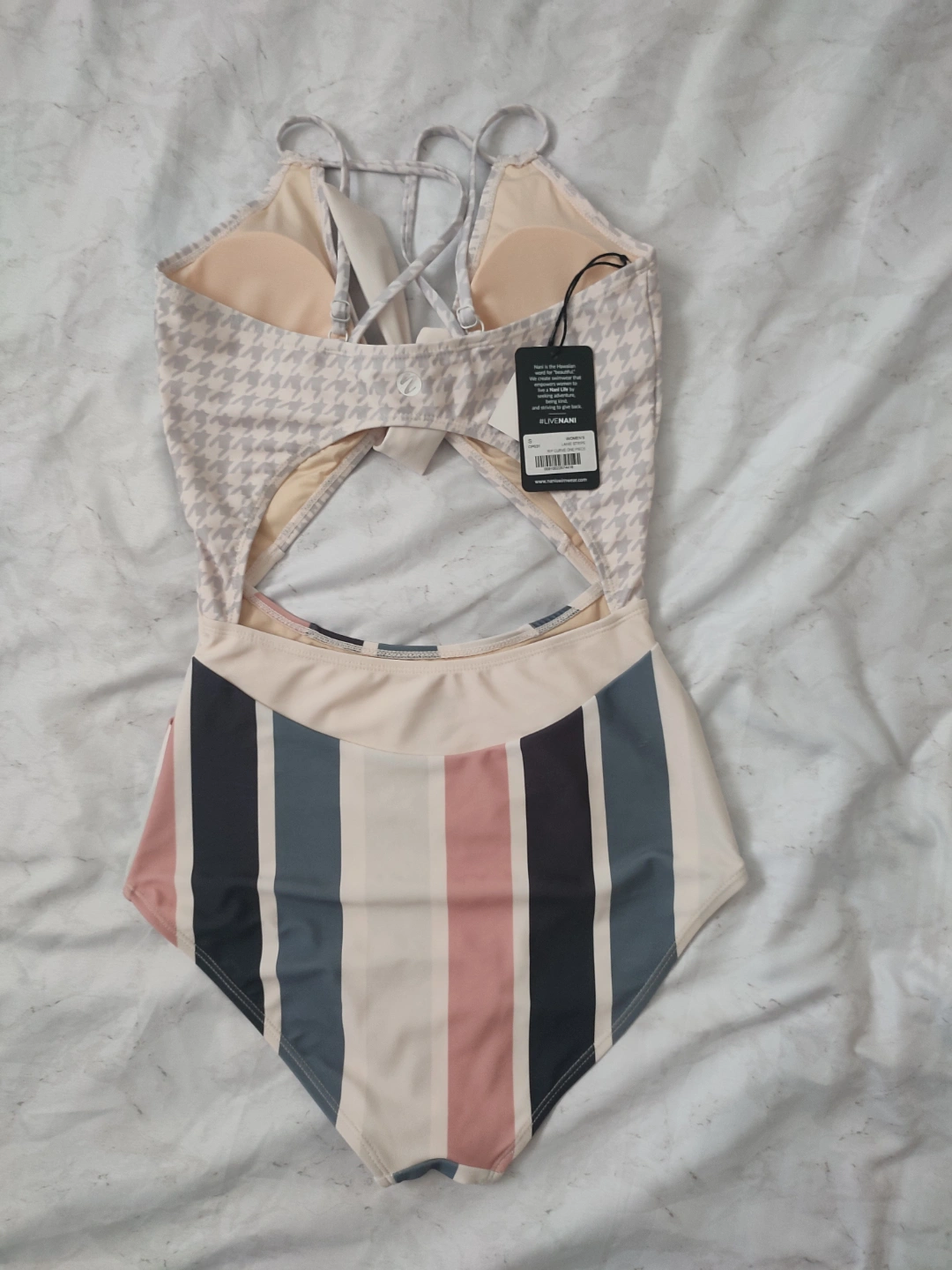 Nani Swimwear Lanie Stripe Rip Curve One-Piece Swimsuit Gorgeous one-piece swimsuit. Features a houndstooth top and striped bottom. Cut-out design. Size small. Brand new with tags.