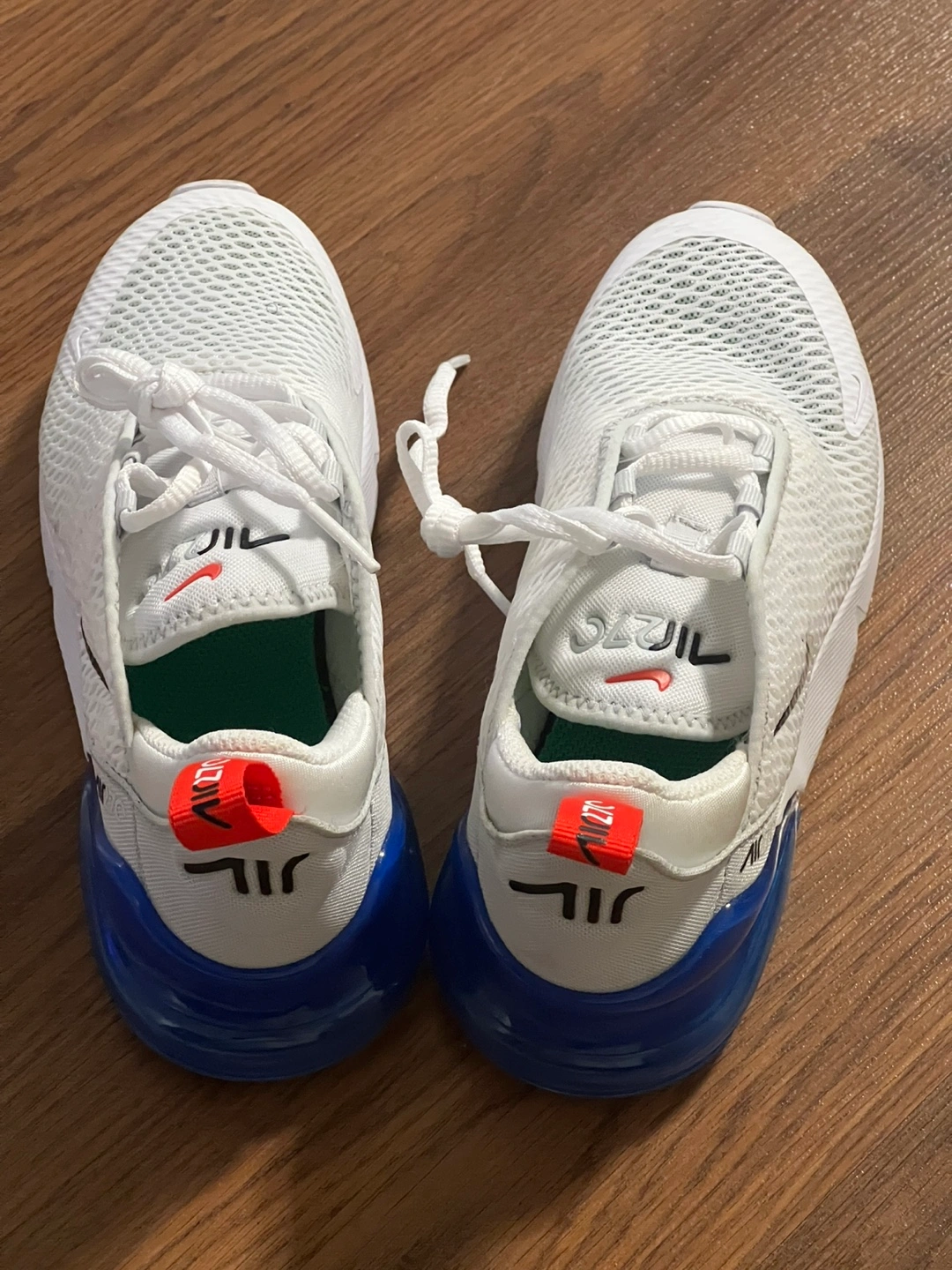Never worn. White and blue Air Max 270 shoes. Size 1.5 youth. Excellent condition. Comes from clean, pet/smoke free home Please see other items for great deals + bundles + free stuff Pick up at Yorkdale Mall or Scarborough Town Center