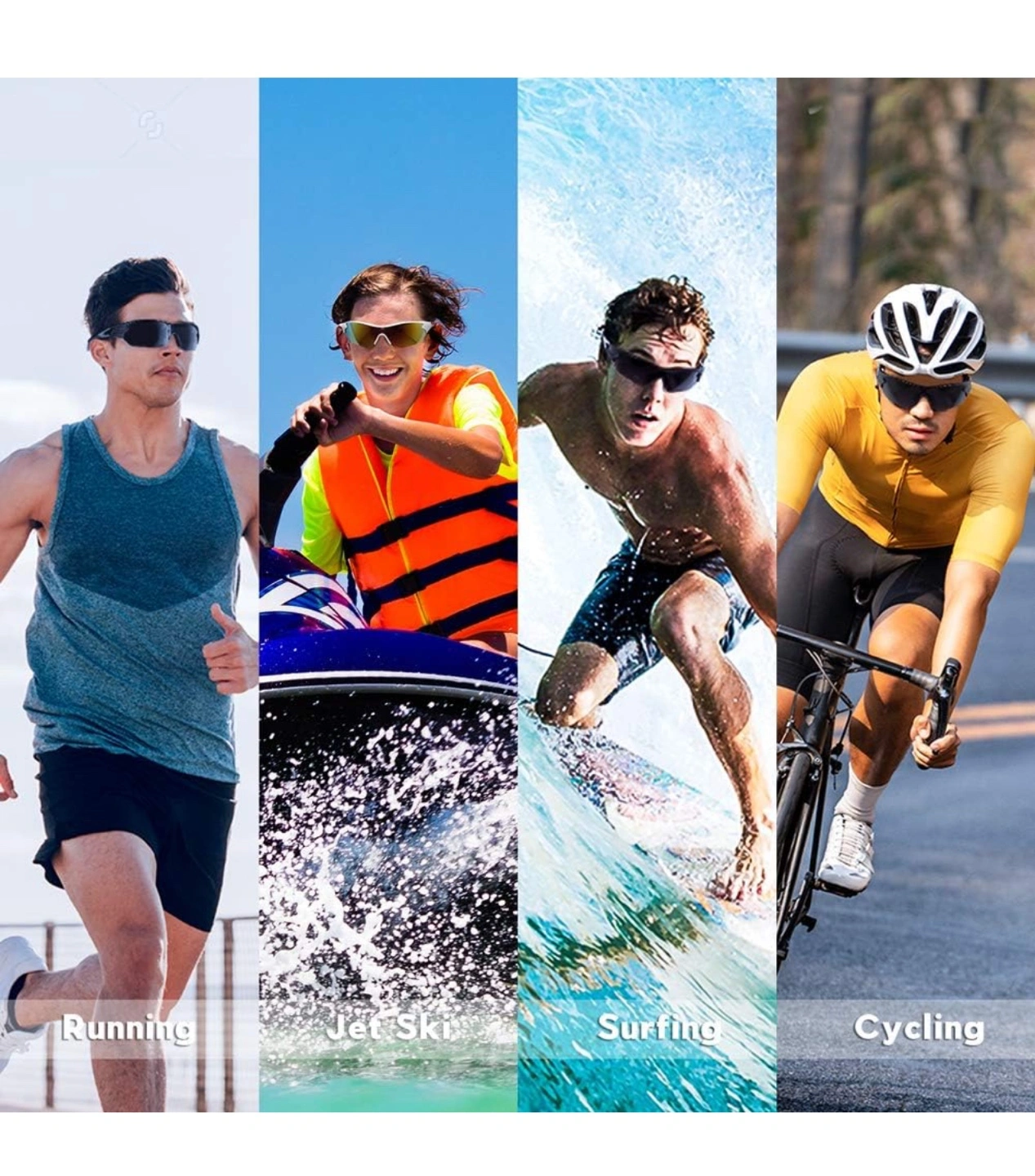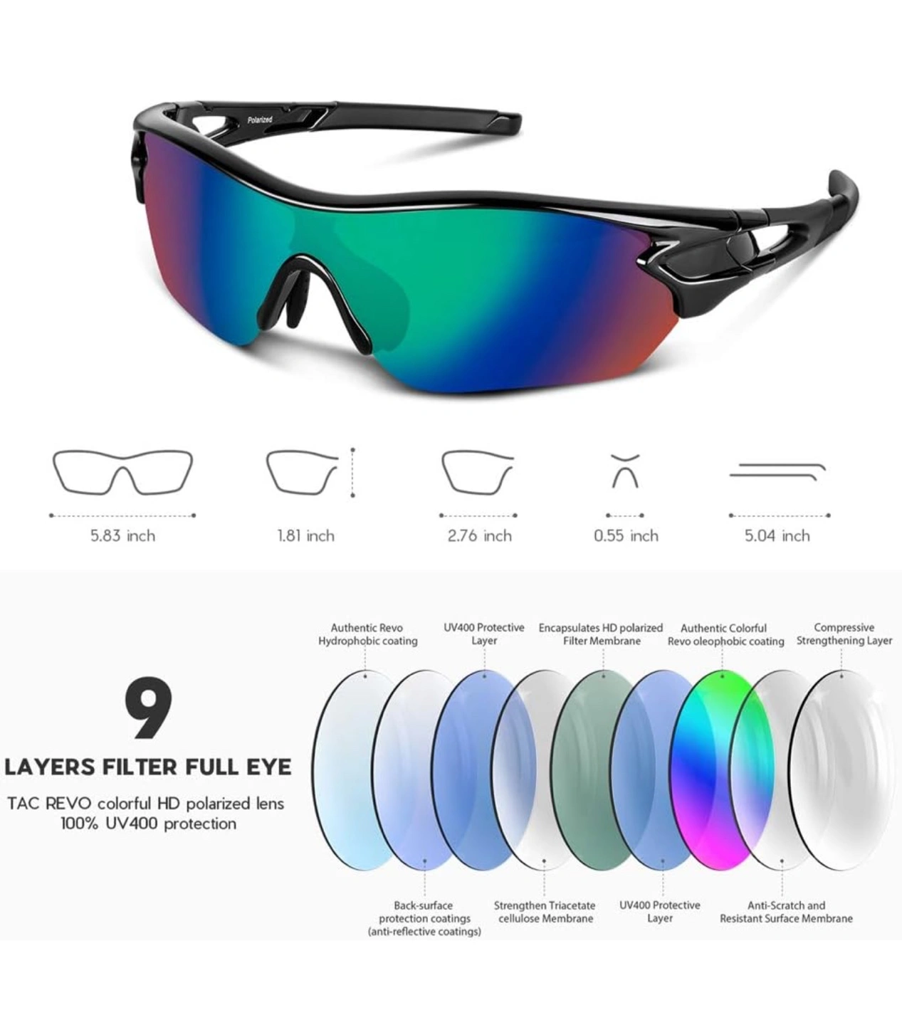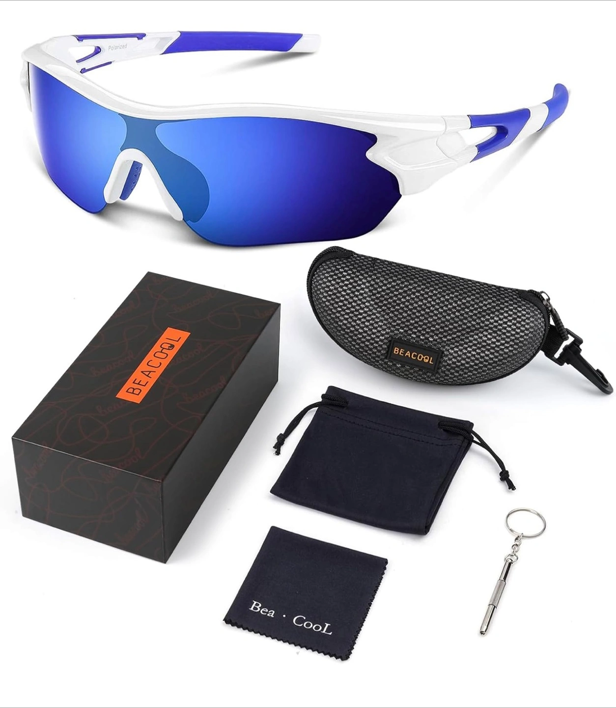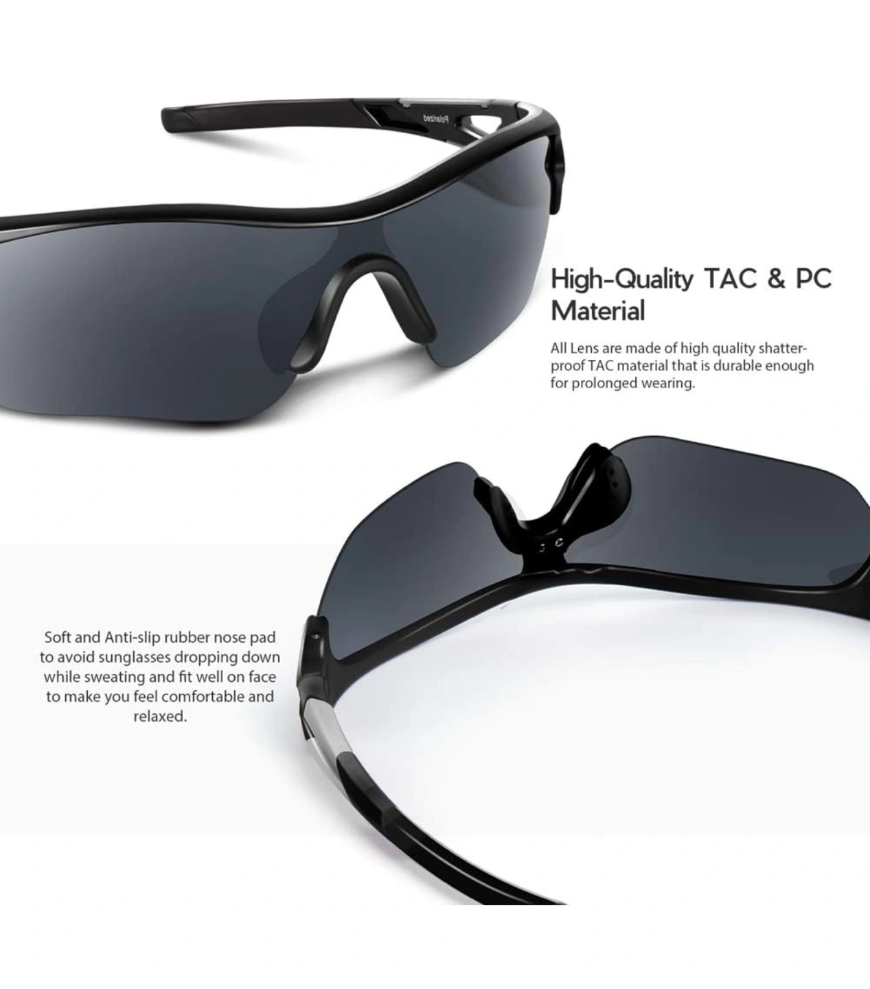 Polarized Sports Sunglasses for Men Women Youth Running Cycling Fishing Baseball Golf TAC Glasses UV400 •High-Quality TAC Lens: Durable, shatterproof, and scratch-resistant polarized lenses for long-term outdoor use. Lightweight PC frame ensures comfort during extended wear. •Revo HD Polarized Lenses: Blocks 100% of harmful UVA/UVB rays, reduces glare, enhances clarity and color contrast for clearer vision. •Anti-Slip Nose Pad: Soft rubber nose pad keeps glasses secure during active use—ideal for running, cycling, fishing, driving, golf, and more. •Includes: 1 pair of BEACOOL sunglasses with premium packaging and accessories.