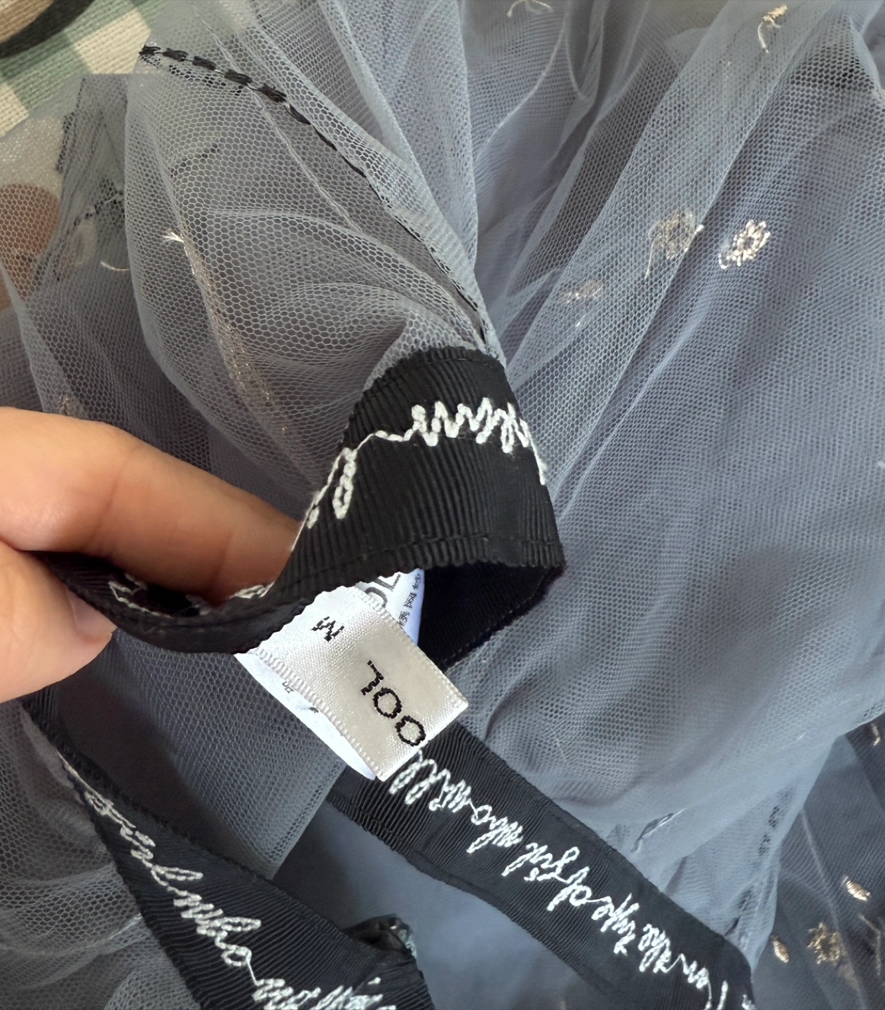 Beautiful grey tulle midi skirt. Features celestial embroidery. A-line silhouette.Max waist 68cm. Looks great with boots or heels.