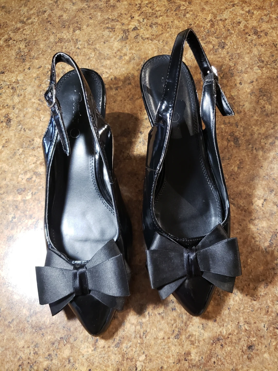 Elegant, feminie, strong manufacturing, kitten heels with satin bow tie motif. Bata, size 7.