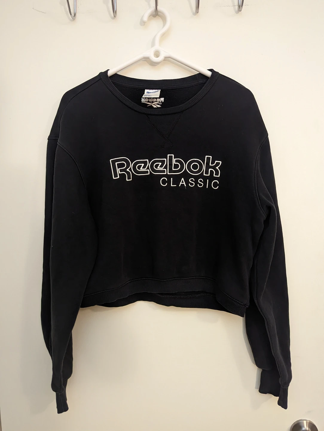 Black cropped Reebok classic pullover sweater/shirt women's size large