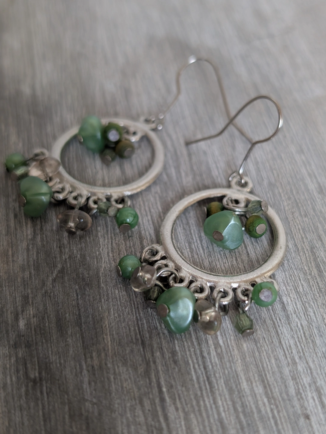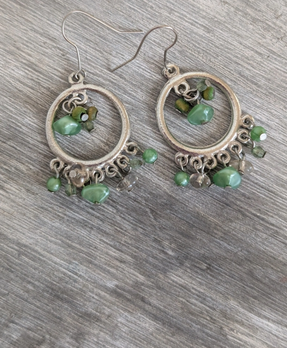 Giving away one of my favorites!๐ Beautiful pair of earrings. Silver tone metal hoops with dangling cat eye green and clear beads. Unique and stylish. Not a silver Exact amount of cash only please ๐ธ Pick up at the location on the map below ๐