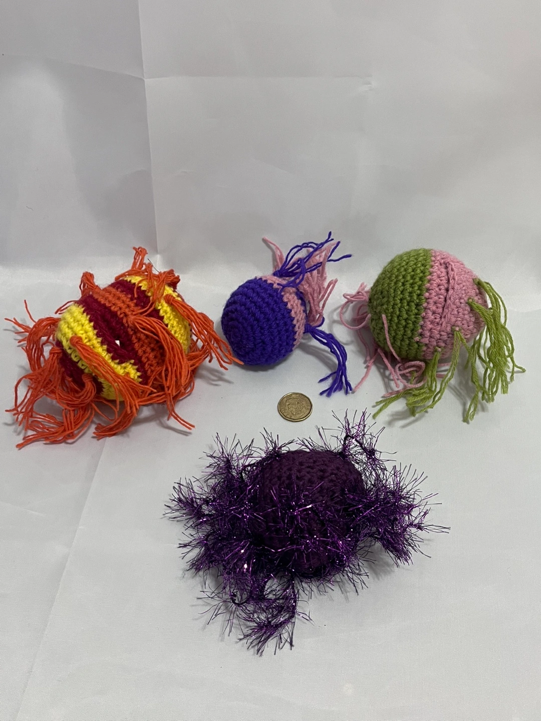 Hand crafted cat toys, great for cuddling, rolling, tossing, and bunny kicks! Made with a wool/cotton blend. Each one has a little pocket and satchel to put catnip(already included)! (Remove before washing on gentle/cold wash). Please specify which one(s) you’re interested in when messaging! Made with love by my mother, selling on her behalf. Only a select amount available! **CHECK OUT MY PROFILE FOR MORE PET ITEMS!** Bundle deals available on multiple purchases, just ask! LOCATION: for pickup in Parkdale near King St W and Jameson Ave.
