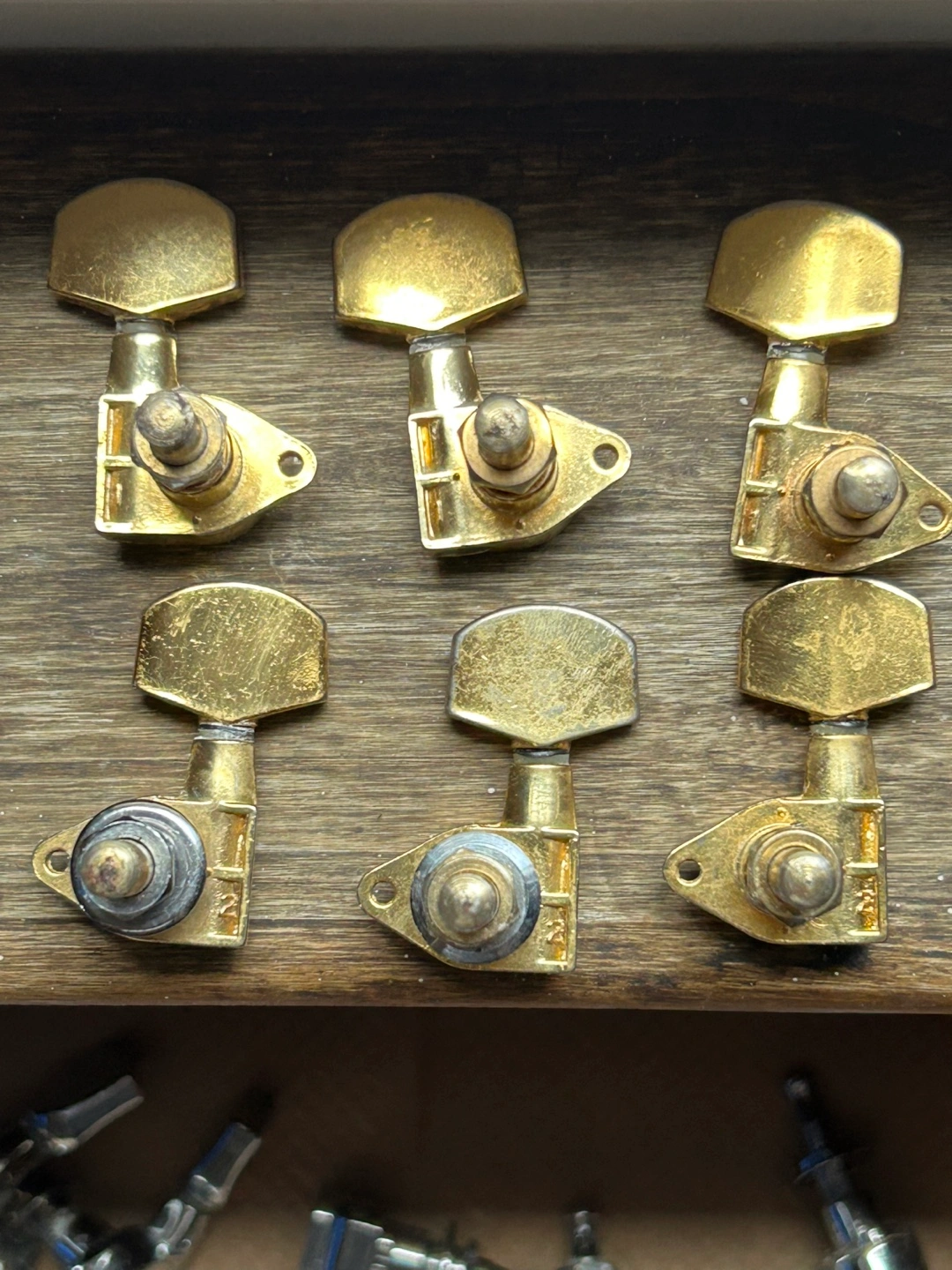 8 lot Guitar tuning pegs Gold Tuner Machine Head Bass Side vintage musical instrument strato The price is 10.00 For these 8 pieces Please see photos for details Last bits from Father in law who did woodwork and also built and repaired guitars back in the day I don't know anything about these aside from fact they're guitar tuning pegs But ... no idea what kind of guitar 10.00 for all 8 of them and there seem to be 2 slightly different makes Flexible re pickup Elmsdale Road M4J 3M3 Donlands O'Connor East York Don Mills south exit off DVP
