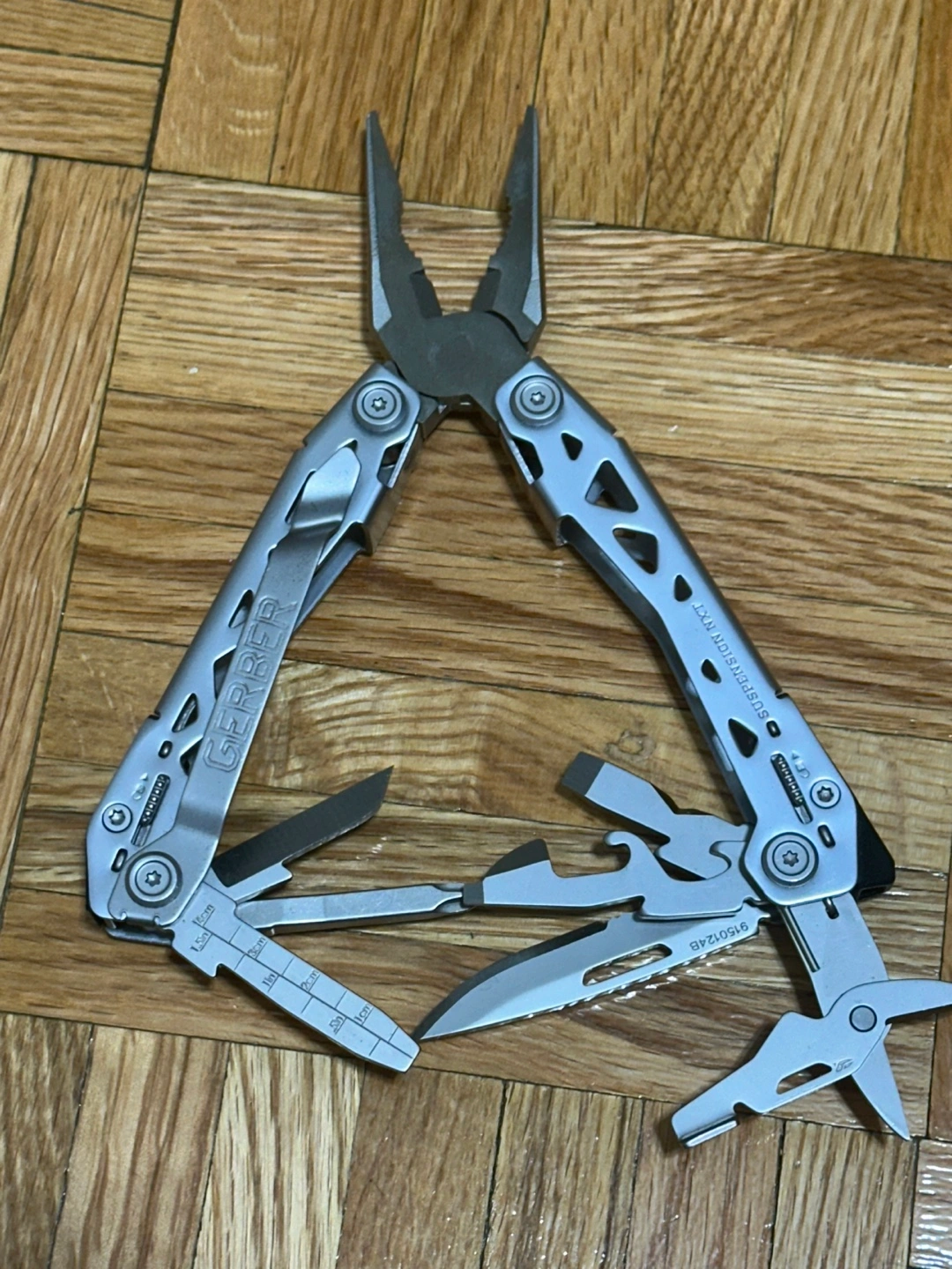 Lightweight, durable multi-tool. Features pliers, various blades, and other useful tools. Great for camping, hiking, or everyday carry.