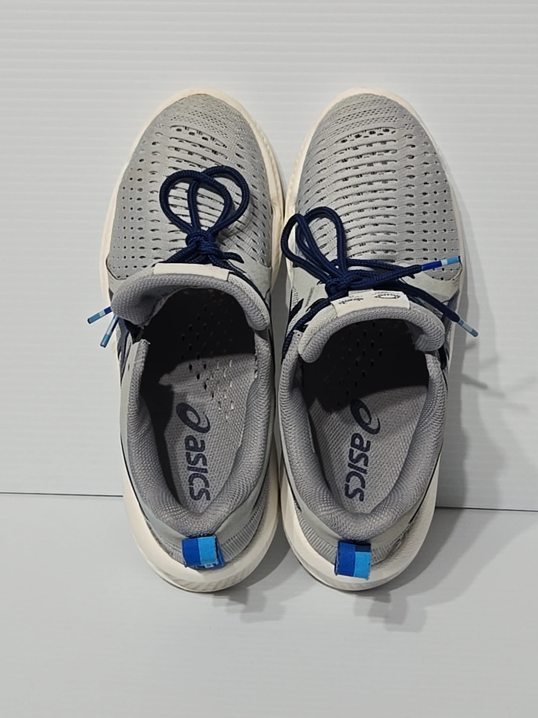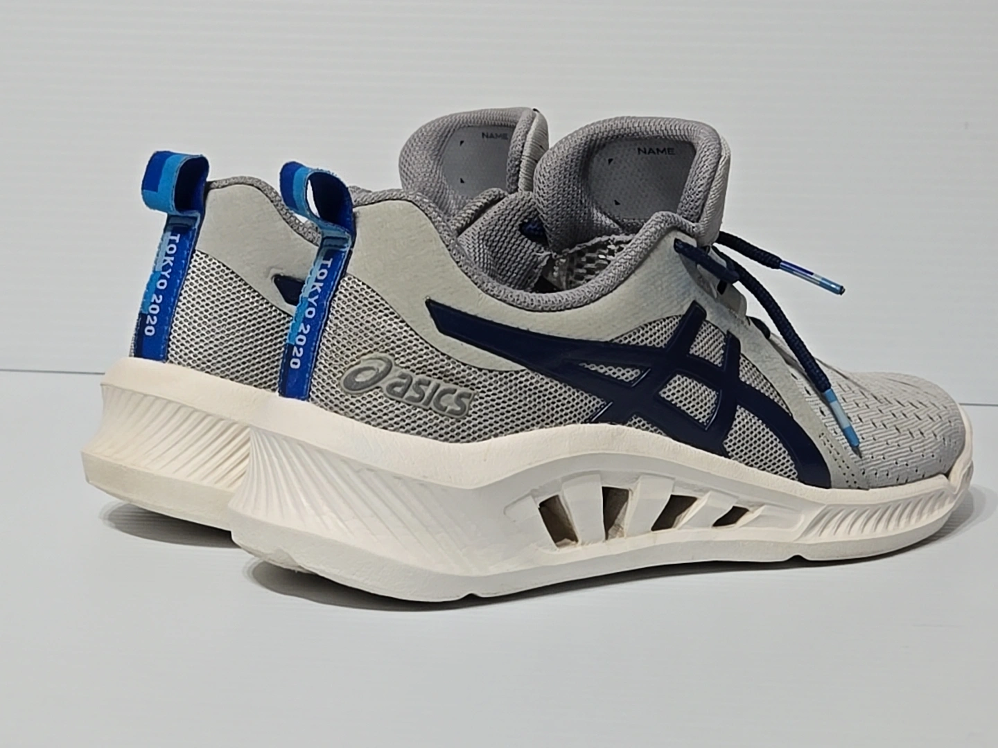 Grey and navy running shoes. Tokyo 2020 branding. Lightweight design. Breathable mesh upper. Comfortable cushioning. mens Size 5 women's size 6.5 pick up in Blackfalds