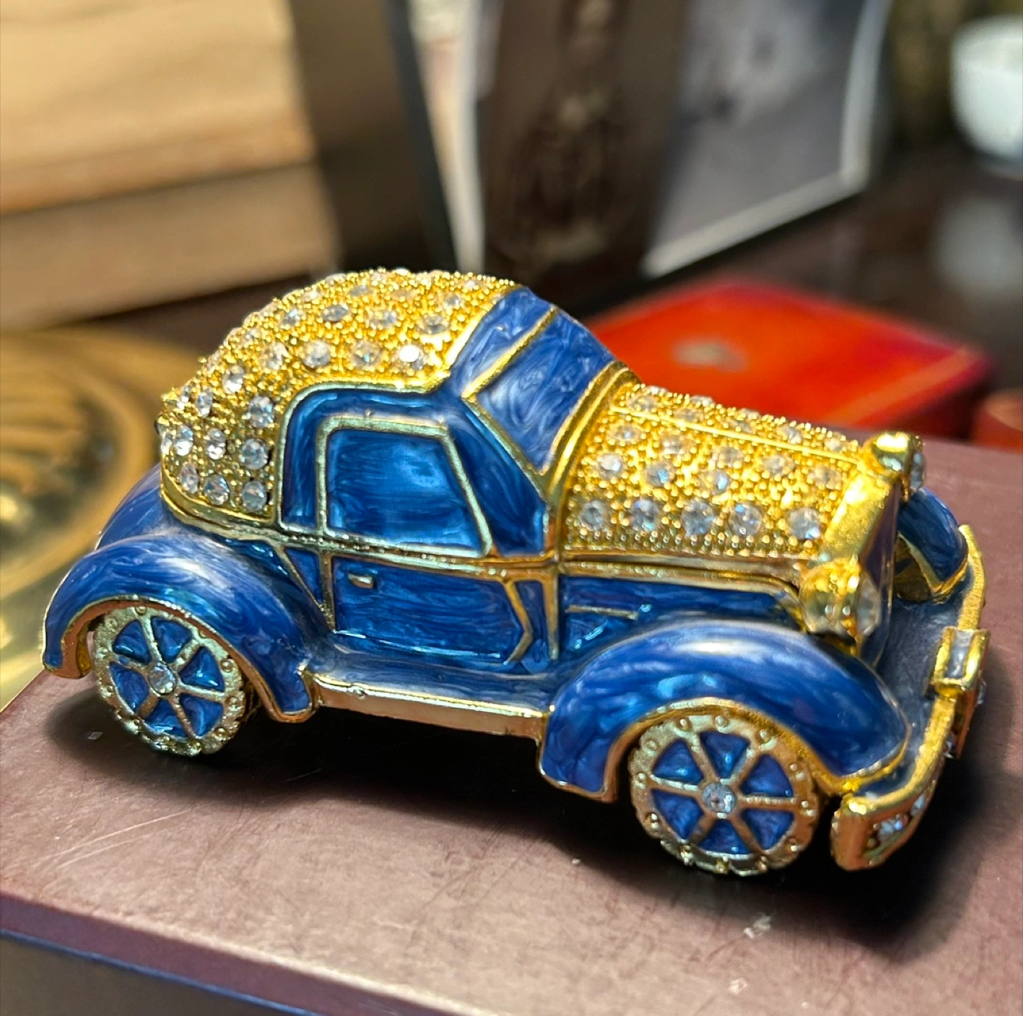 Car vintage box rhinestone enamel trinket pill decor Father's Day gift Mother's Day collectible Very decorative sports car Vintage look Lovely enamel and crystals Opens up Display Paperweight Doll House On a desk On a shelf Buy yourself the car you want and deserve and also has very good gas mileage 35.00 Flexible re pickup Elmsdale Road M4J 3M3 Donlands O'Connor East York Don Mills south exit off DVP