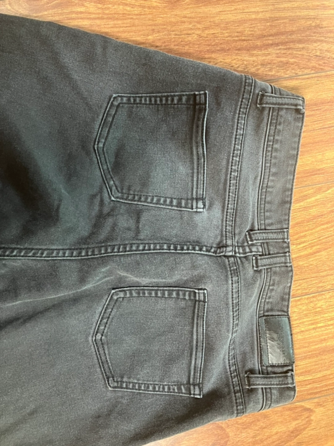 Women’s black skinny low-rise jeans. Size W31. Made in China. 93% cotton, 5% polyester, 2% elastane. Leather patch.