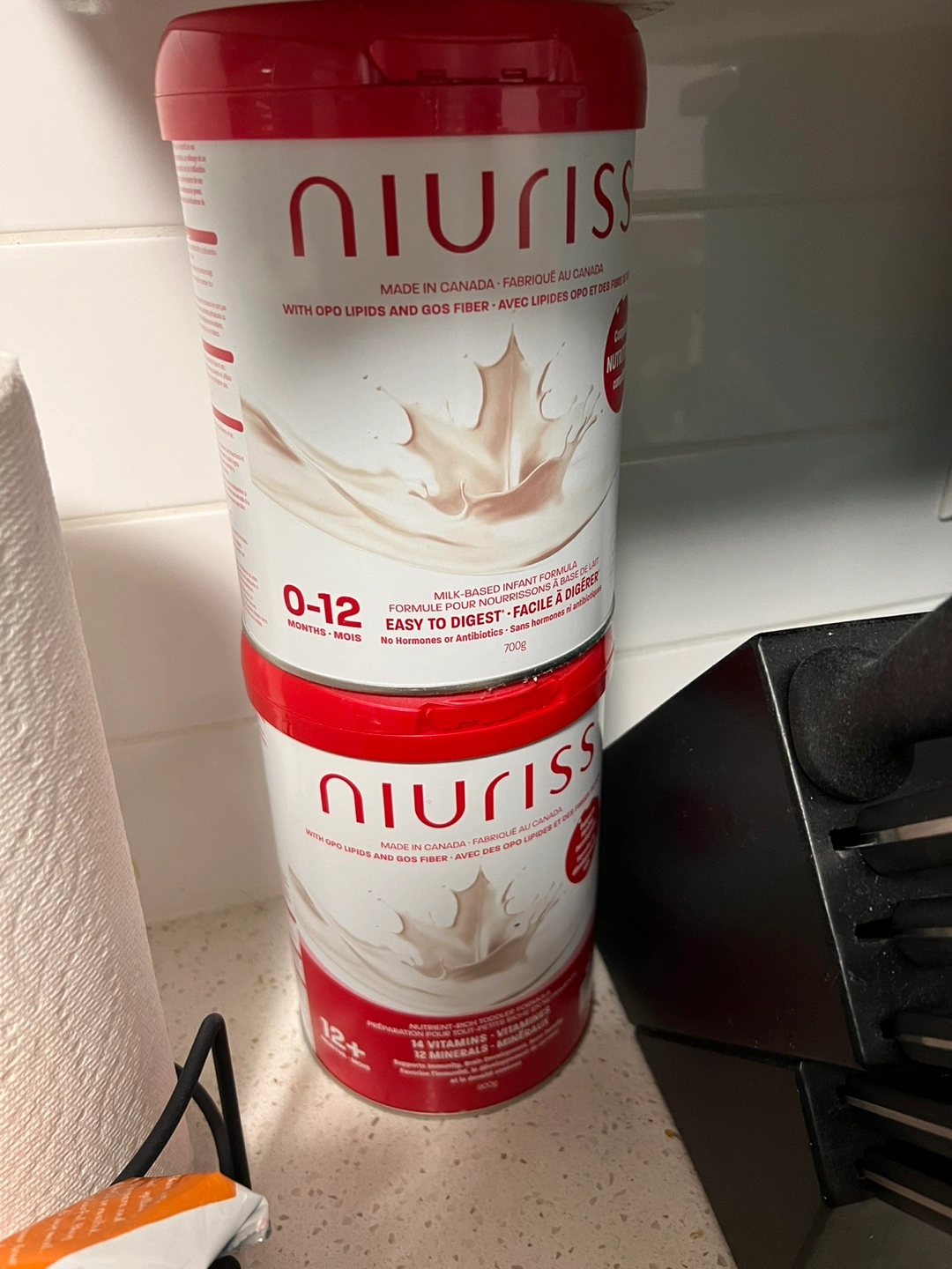 Two containers of Niuriss infant formula. One 0-12 months and one 12+ months. Milk-based, easy to digest. Made in Canada. $50 for both or Best offer