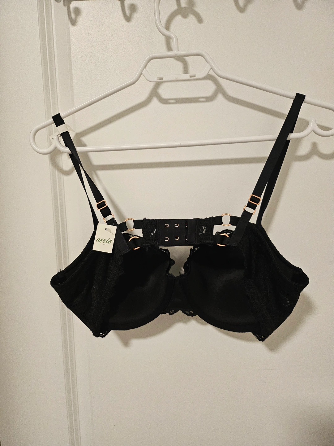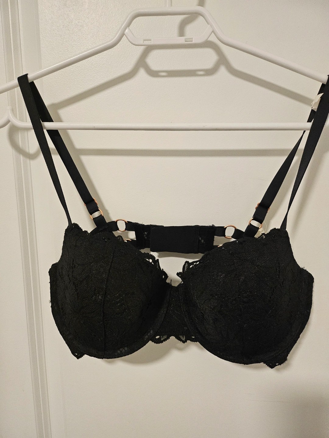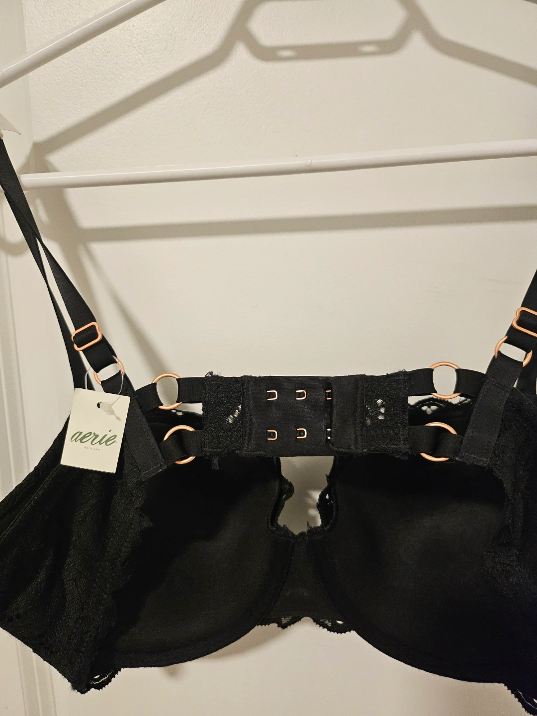 Black lace balconette bra. Rose gold hardware. New with tag. Size 34C.