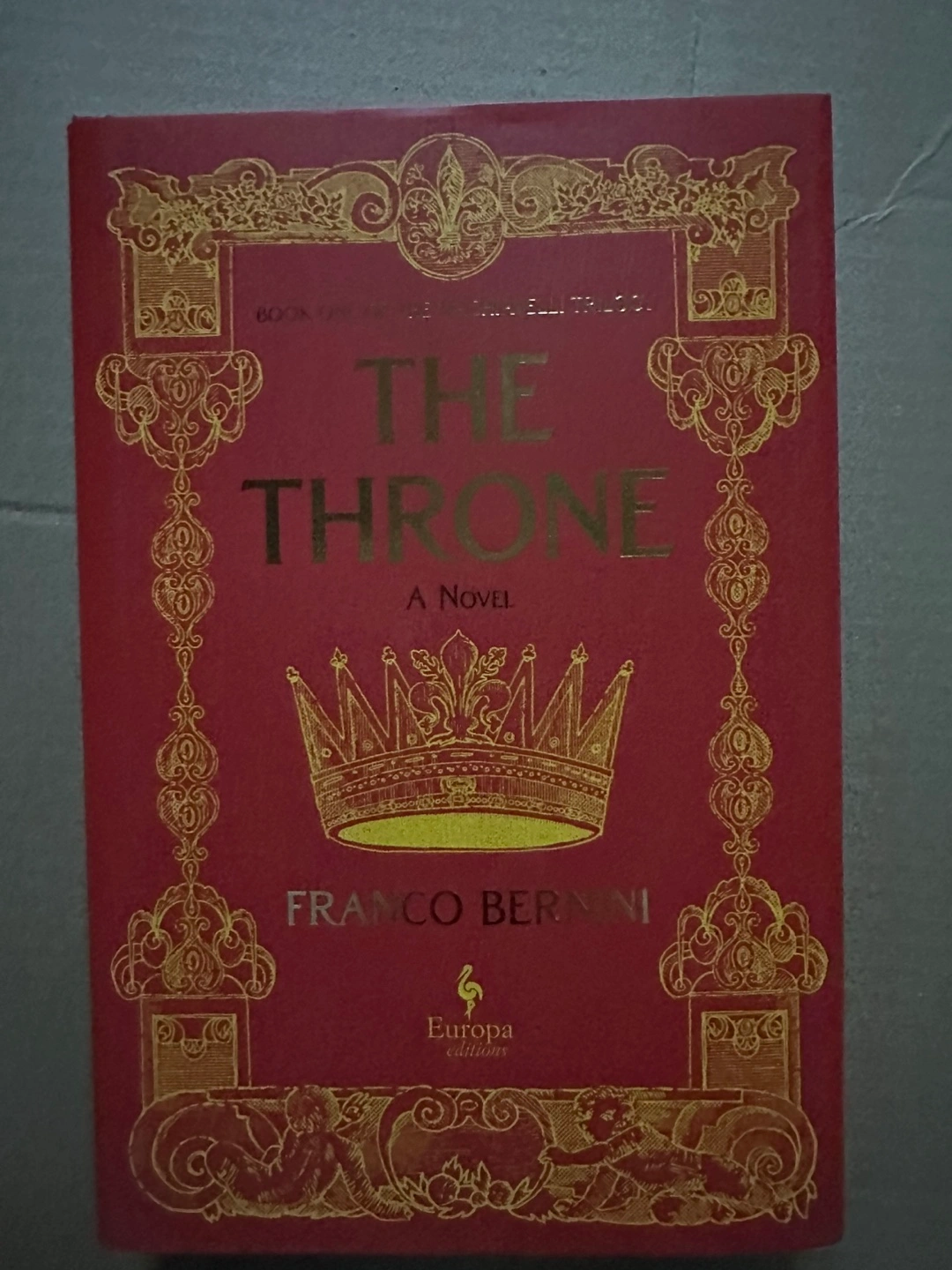 Europa Editions. First book in the Machiavelli trilogy. Translated by Oonagh Strainsky. Features a red cover with gold detailing.