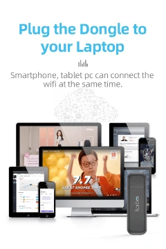 Portable 4G LTE WiFi dongle. Supports multiple devices. Plug and play setup. Super smooth speeds. Ideal for travel or home use. SIM card needed.