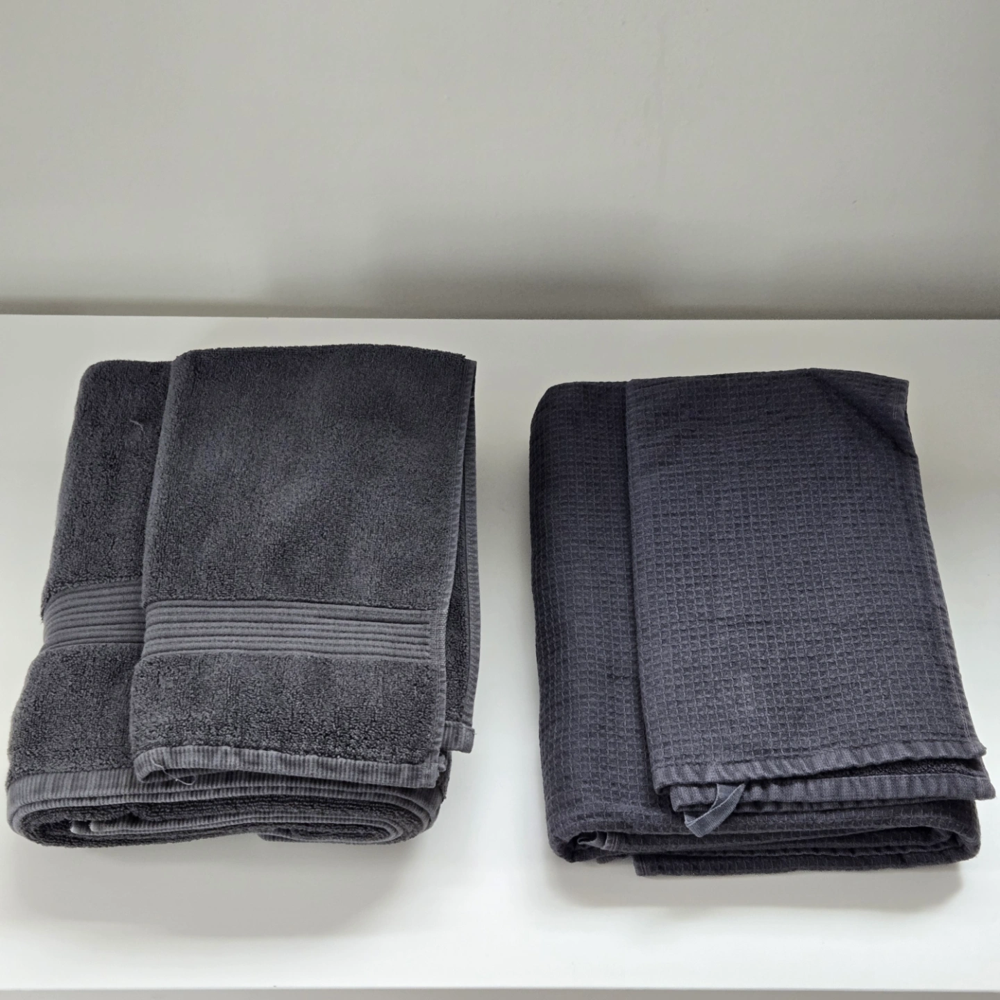 • No tears or marks • Used only once • They are washed and clean • Giving away as a bundle • FREDRIKSJÖN ▪ Bath towel: 100 x 150 cm (39 x 59 ") ▪ Hand towel: 40 x 70 cm (16 x 28") • SALVIKEN ▪ Bath towel: 100 x 150 cm (39 x 59 ") ▪ Hand towel: 40 x 70 cm (16 x 28")