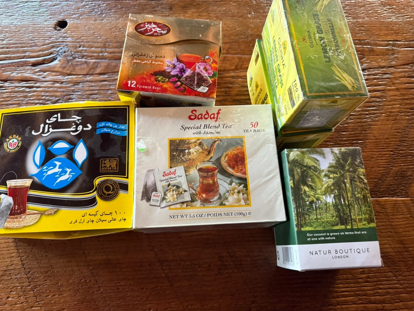 Collection of five different tea boxes. Includes a variety of flavours and brands. Perfect for tea lovers.