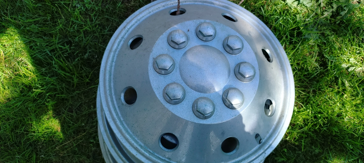 silver truck wheel covers. Multiple mounting holes. Good condition. they came off of a RV GM 16 inch