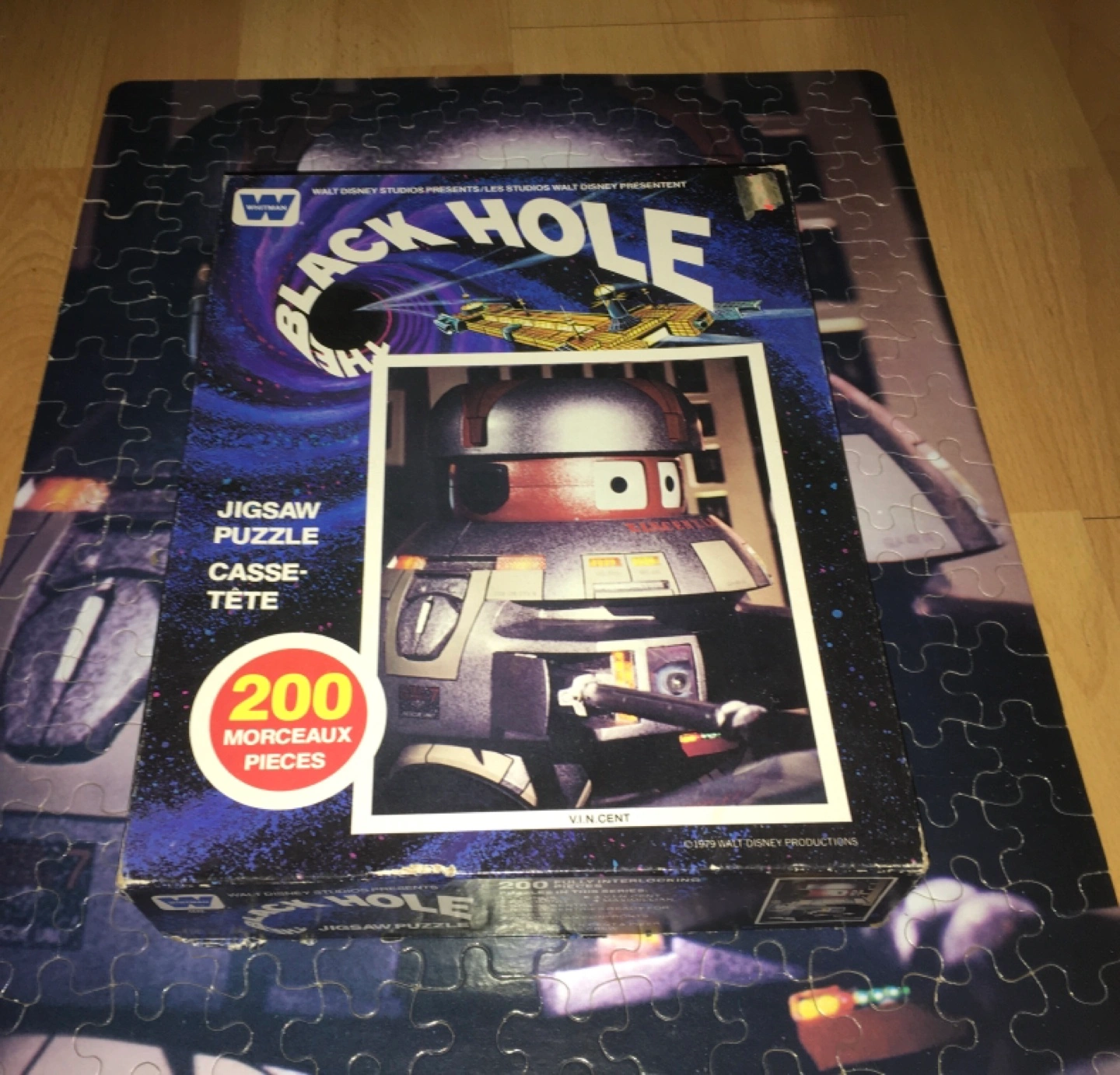 1979 Vintage Black Hole jigsaw puzzle. Features V.I.N.Cent. 200 pieces. Walt Disney Studios. Whitman brand. Complete as shown in one of the photos. Please see all photos. Selling for $15.