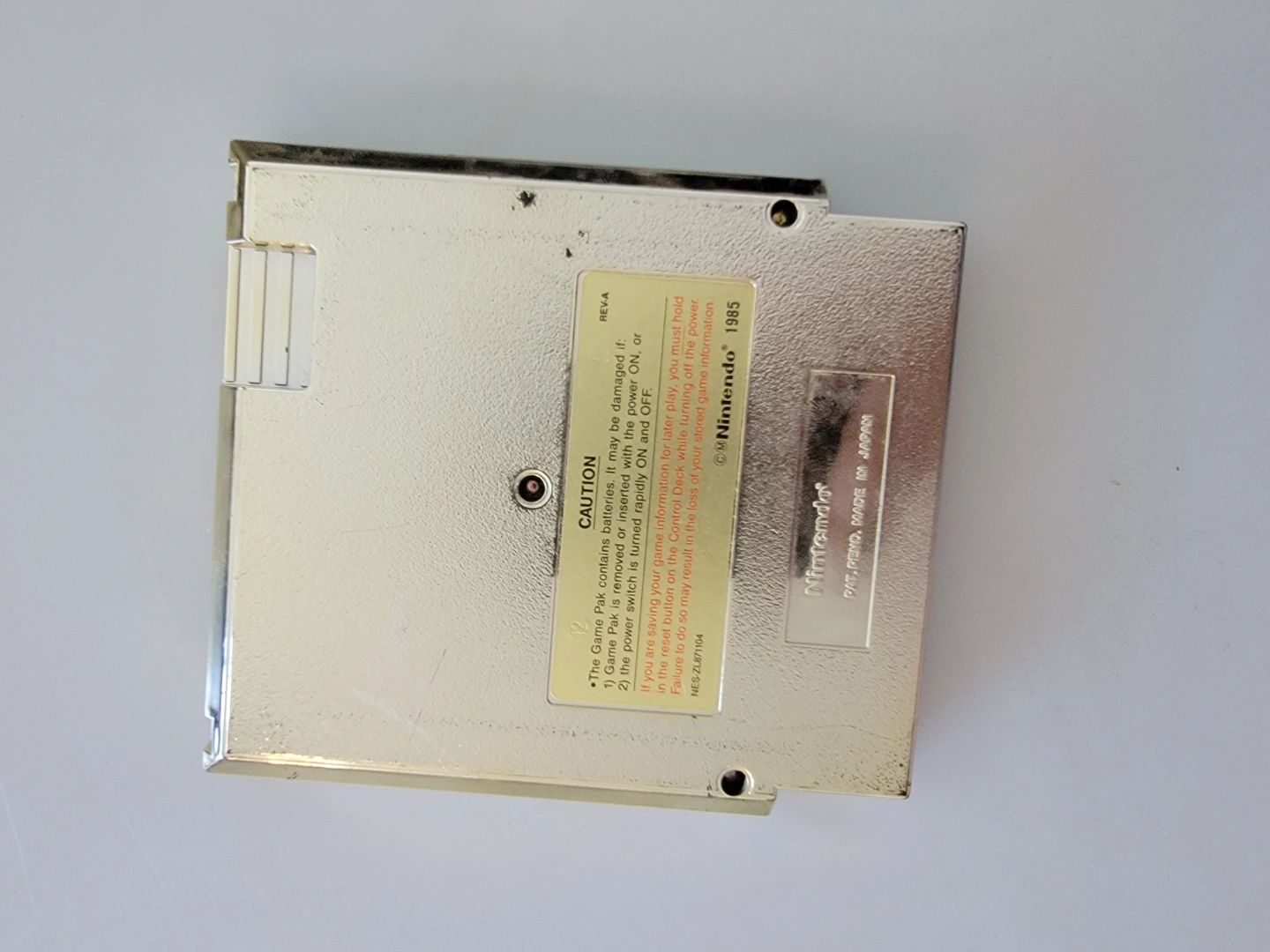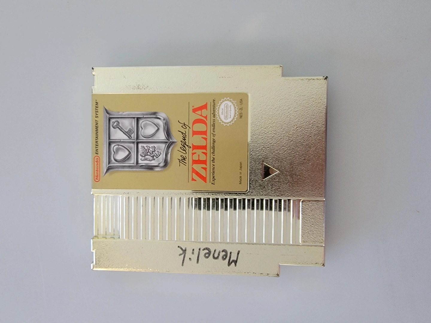 NES game cartridge. Gold-coloured. The Legend of Zelda. Pre-owned. Shows some wear.