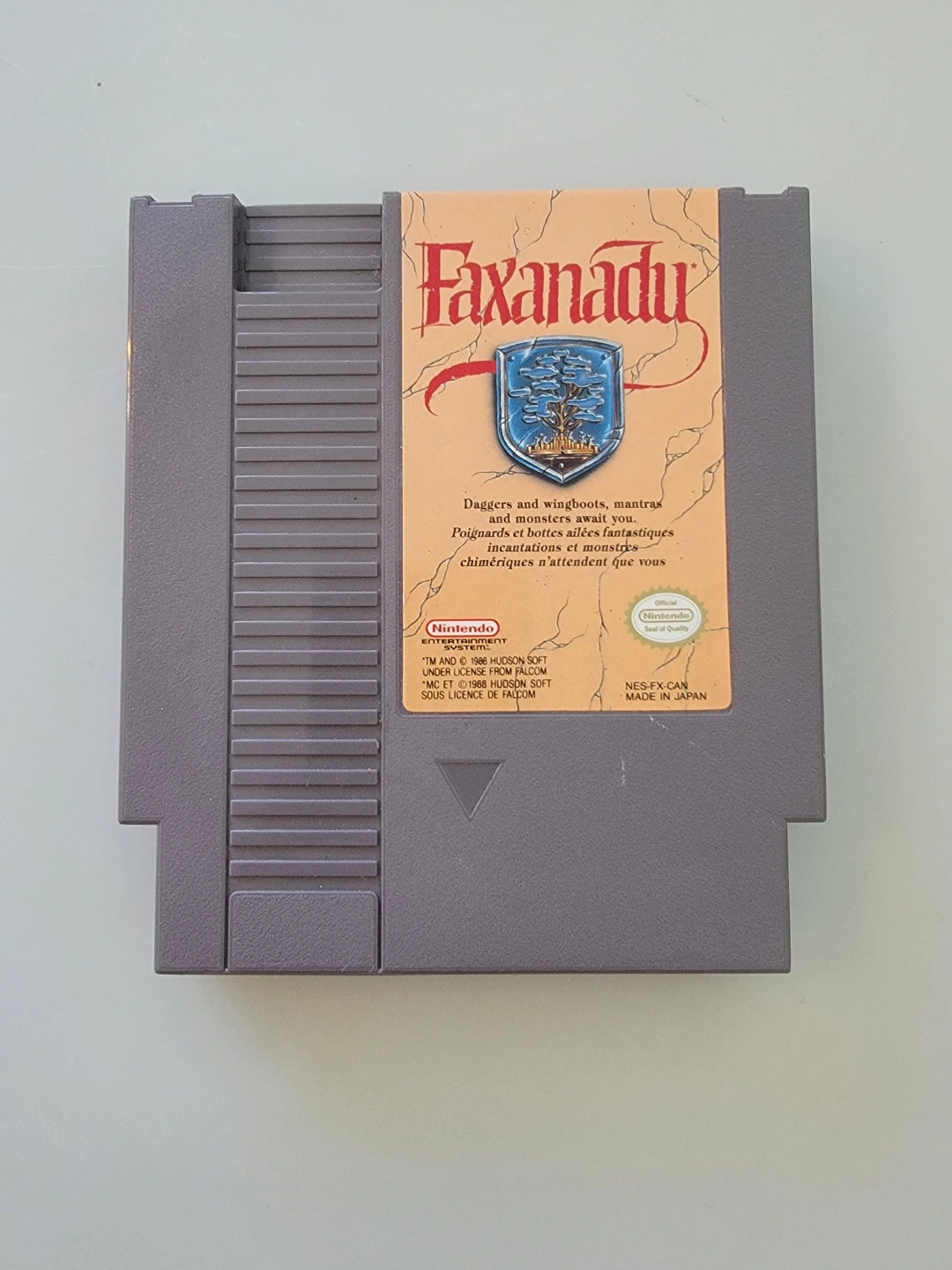 Vintage Nintendo Entertainment System game cartridge. Faxanadu. Made in Japan. Pre-owned.