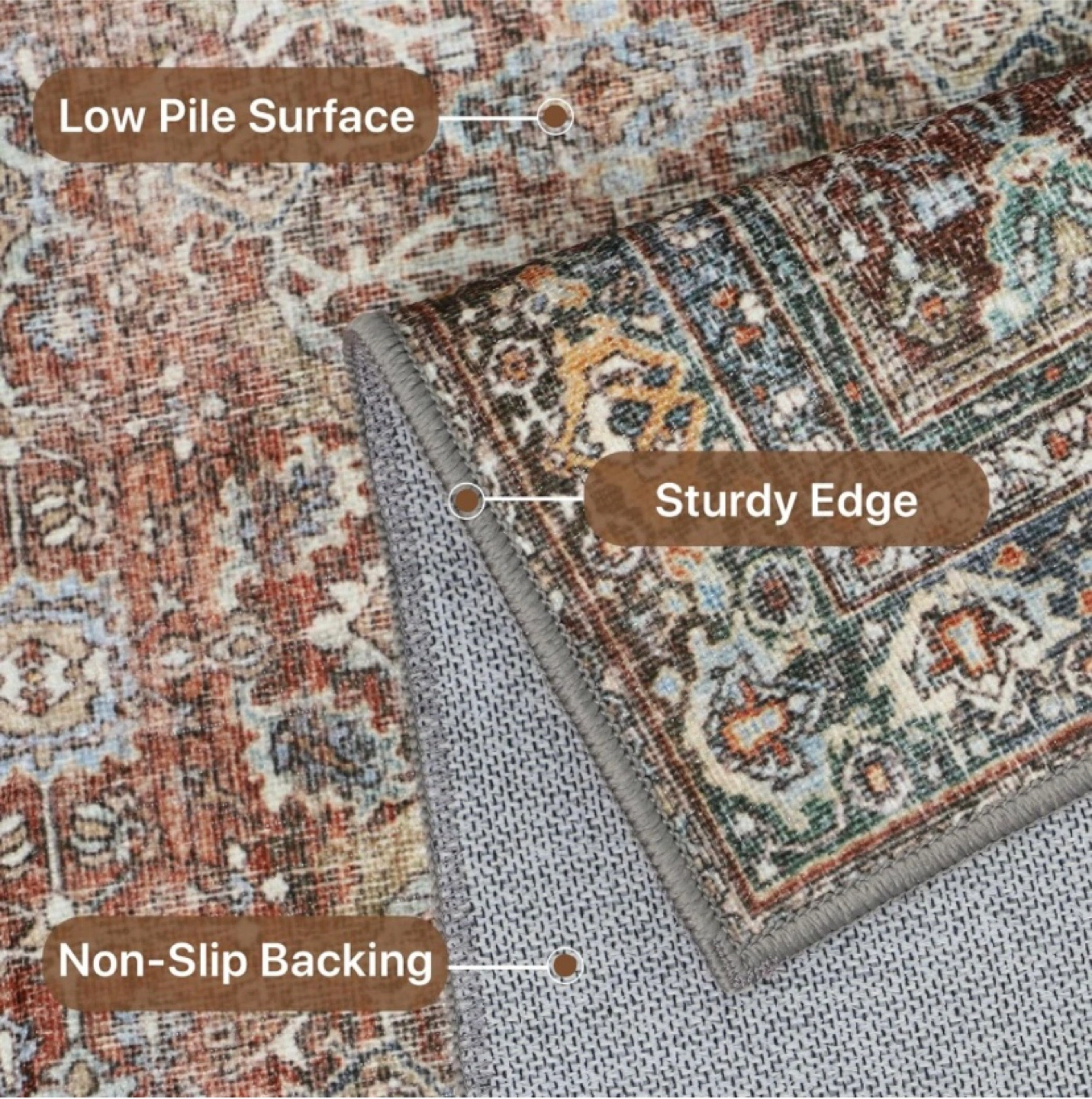 New 5x7 Area Rug Machine Washable Terracotta/Indigo Anti-slip Backing $60 Pickup in Whitby
