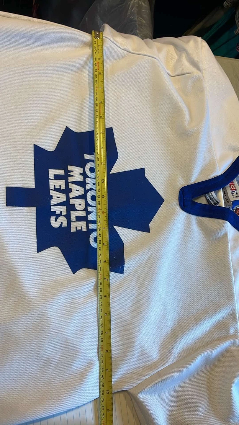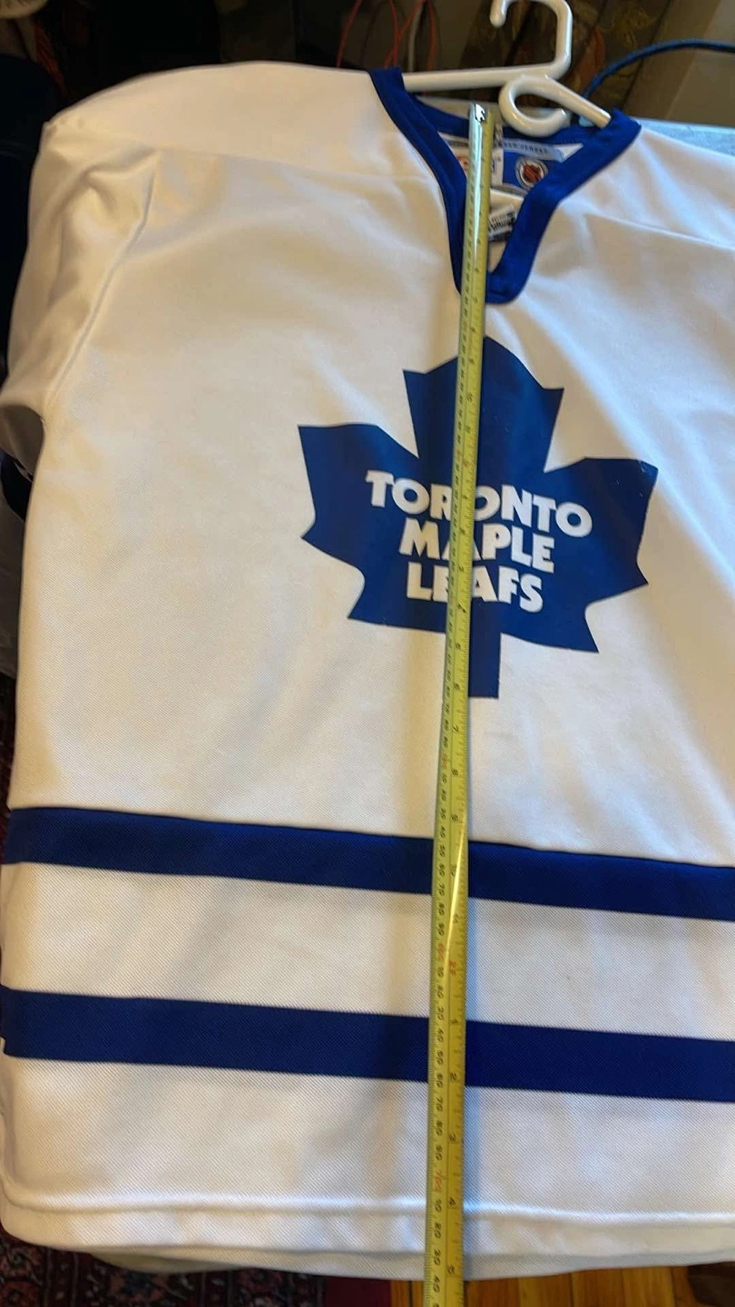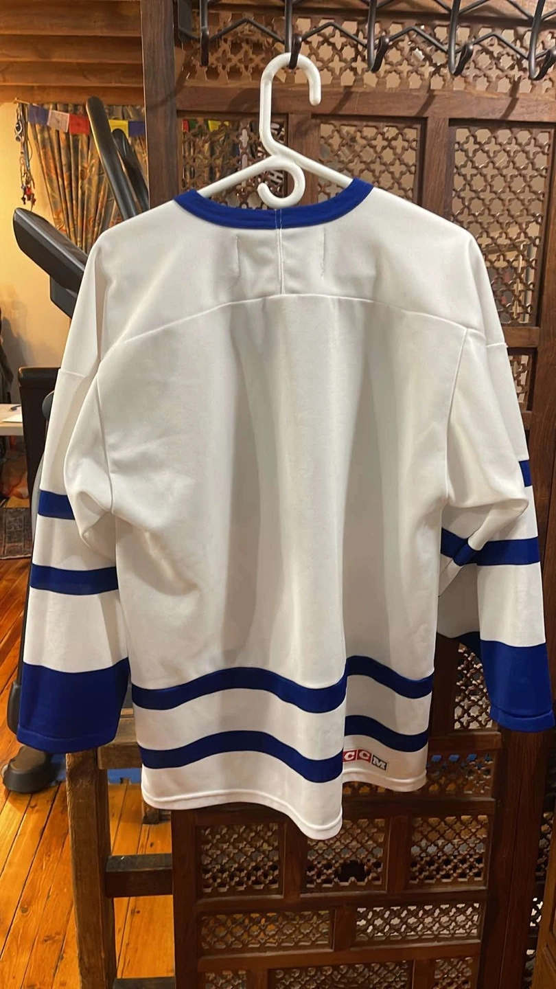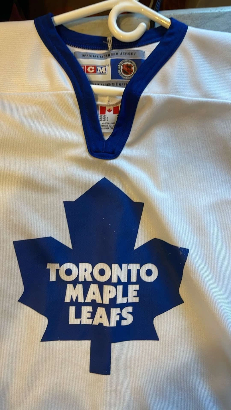 Vintage Toronto Maple Leafs hockey jersey. White with blue accents. Officially licensed. Adult size. Mens medium