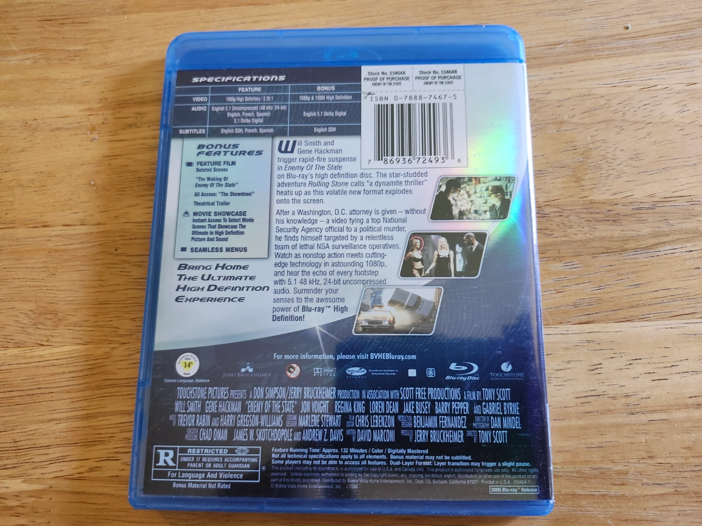 Blu-ray disc. Starring Will Smith and Gene Hackman. Features bonus content.