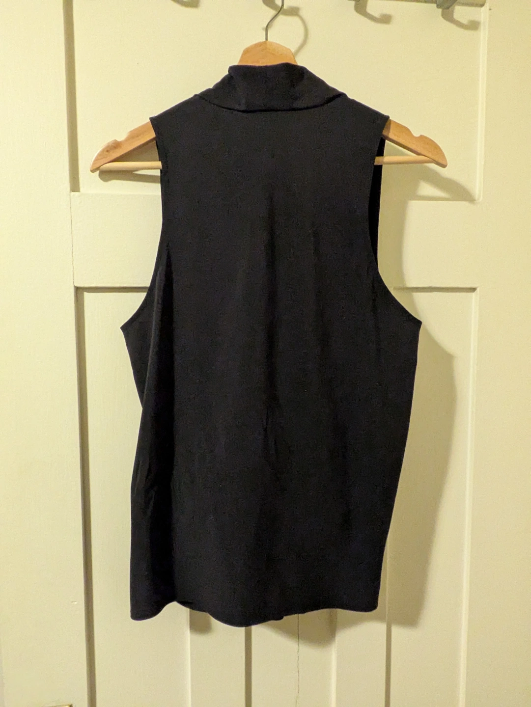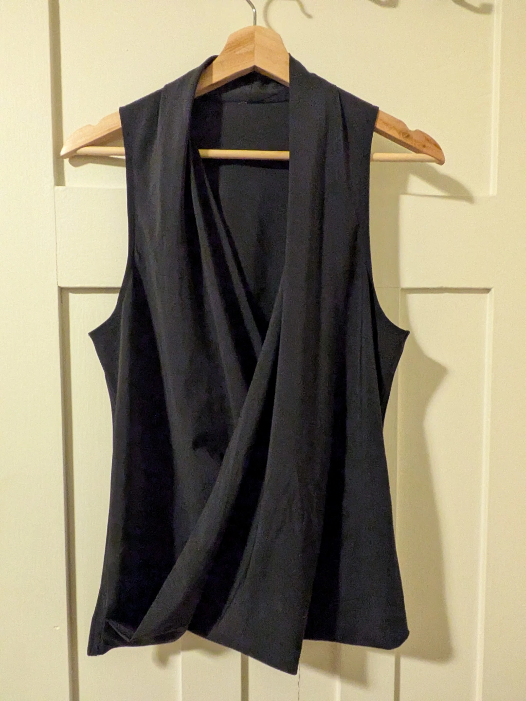 Black sleeveless top. Surplice neckline. Stretchy material feels soft like a silk but wicks away water.. Great for layering or wearing alone. Made by Lululemon. Fits like a medium. In excellent condition Pick up in the West End of Vancouver
