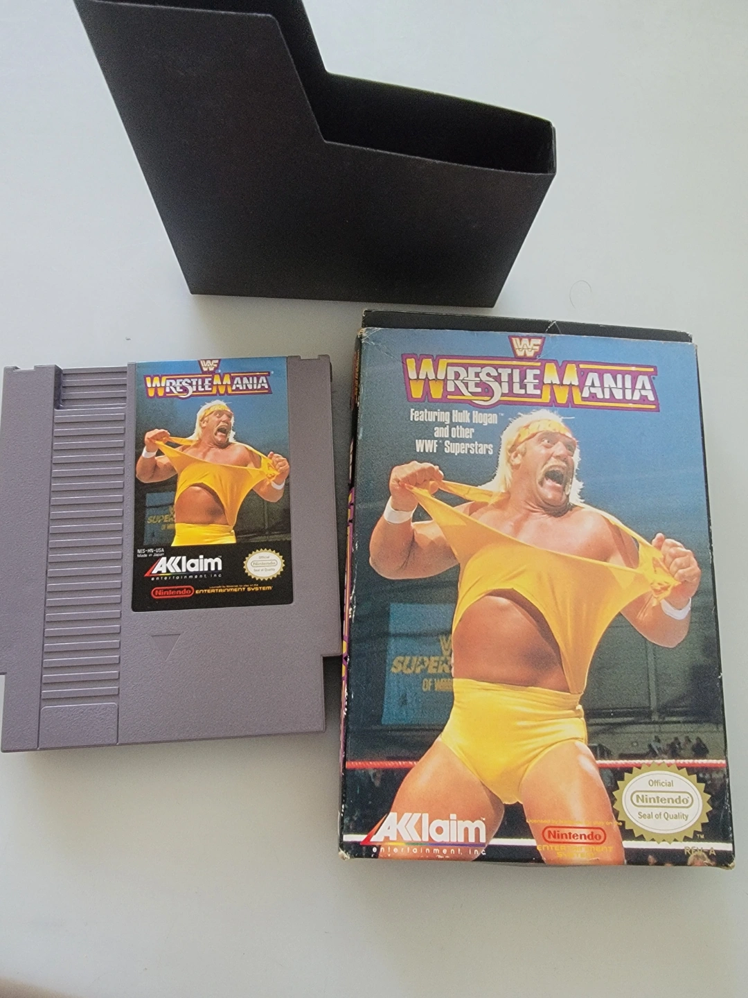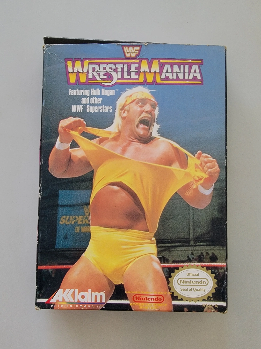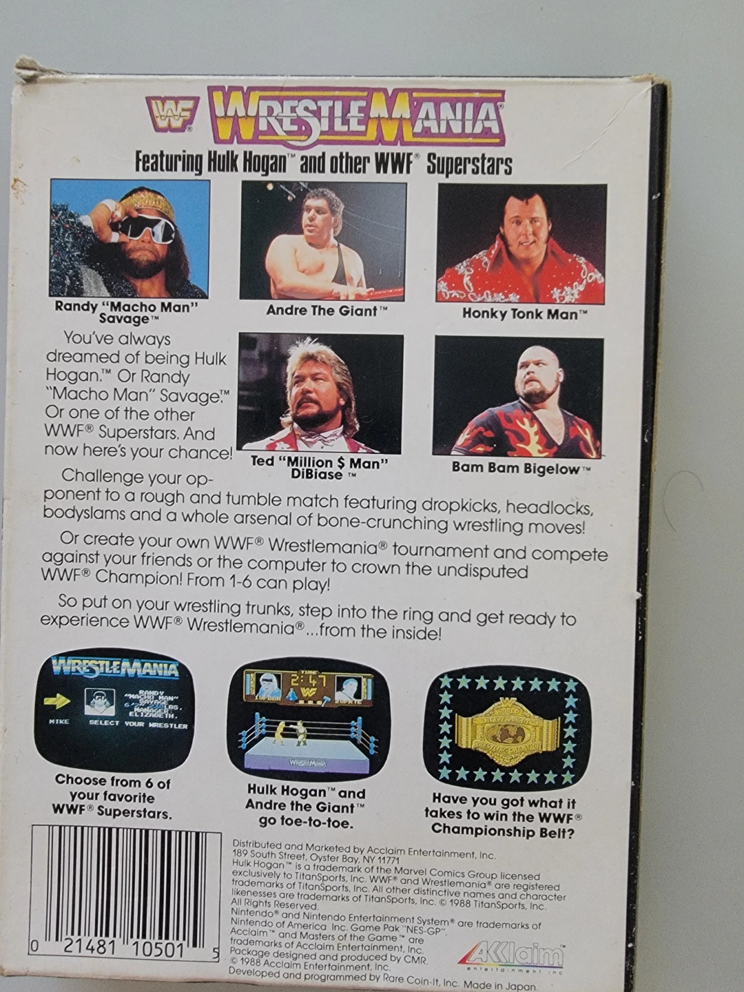 Vintage WWF Wrestlemania game for Nintendo Entertainment System. Features Hulk Hogan and other WWF superstars. Includes game cartridge and box. Great collectible for wrestling and retro gaming fans.