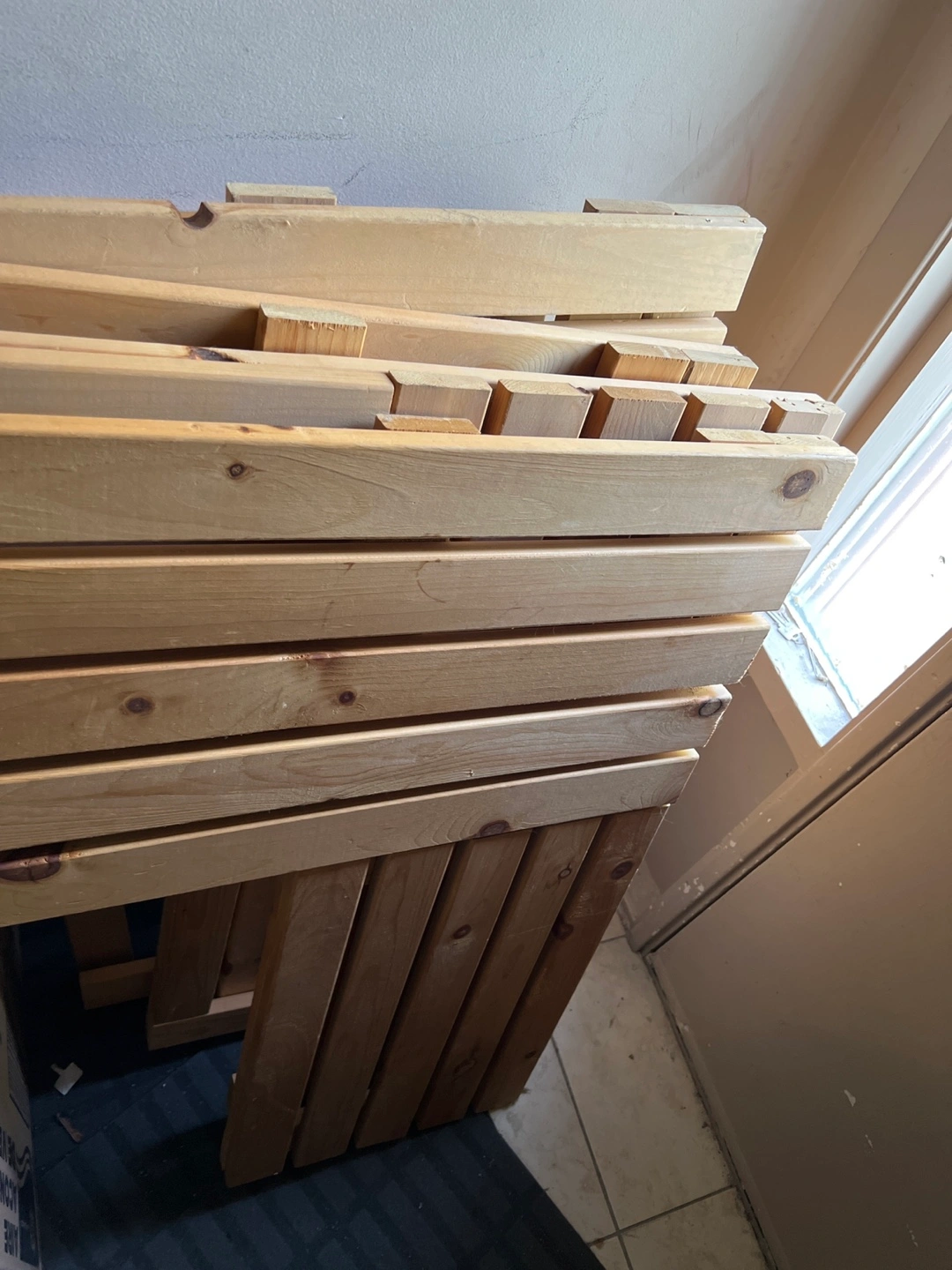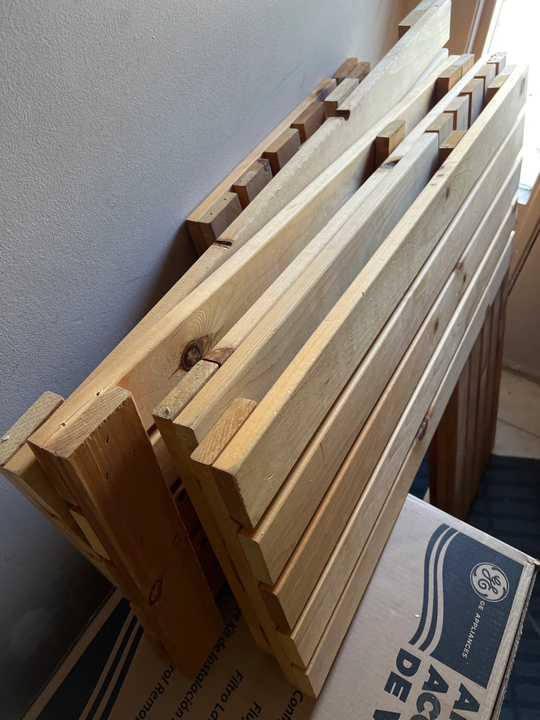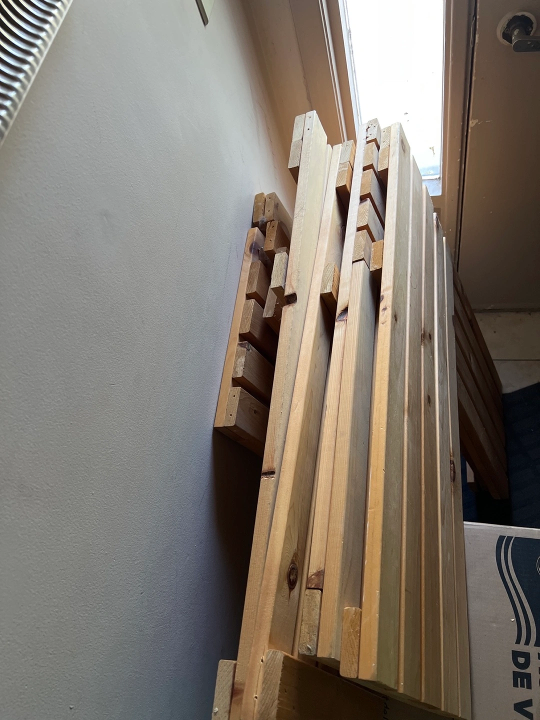 Left outside at 61 Lambertlodge avenue. (Near Christie and DuPont) Light coloured wood. Appears to be pine. Was shelving now dissembled but parts missing. Please be careful some planks have exposed nails Left outside and will be collected by the city if not picked up soon. I will not be responding to messages.