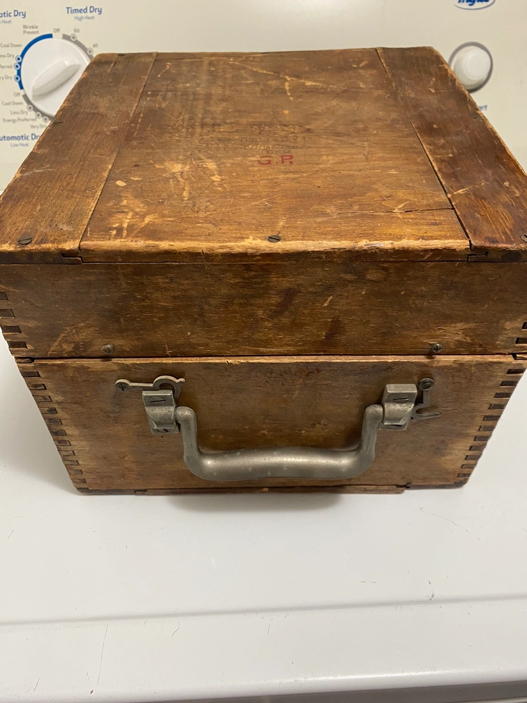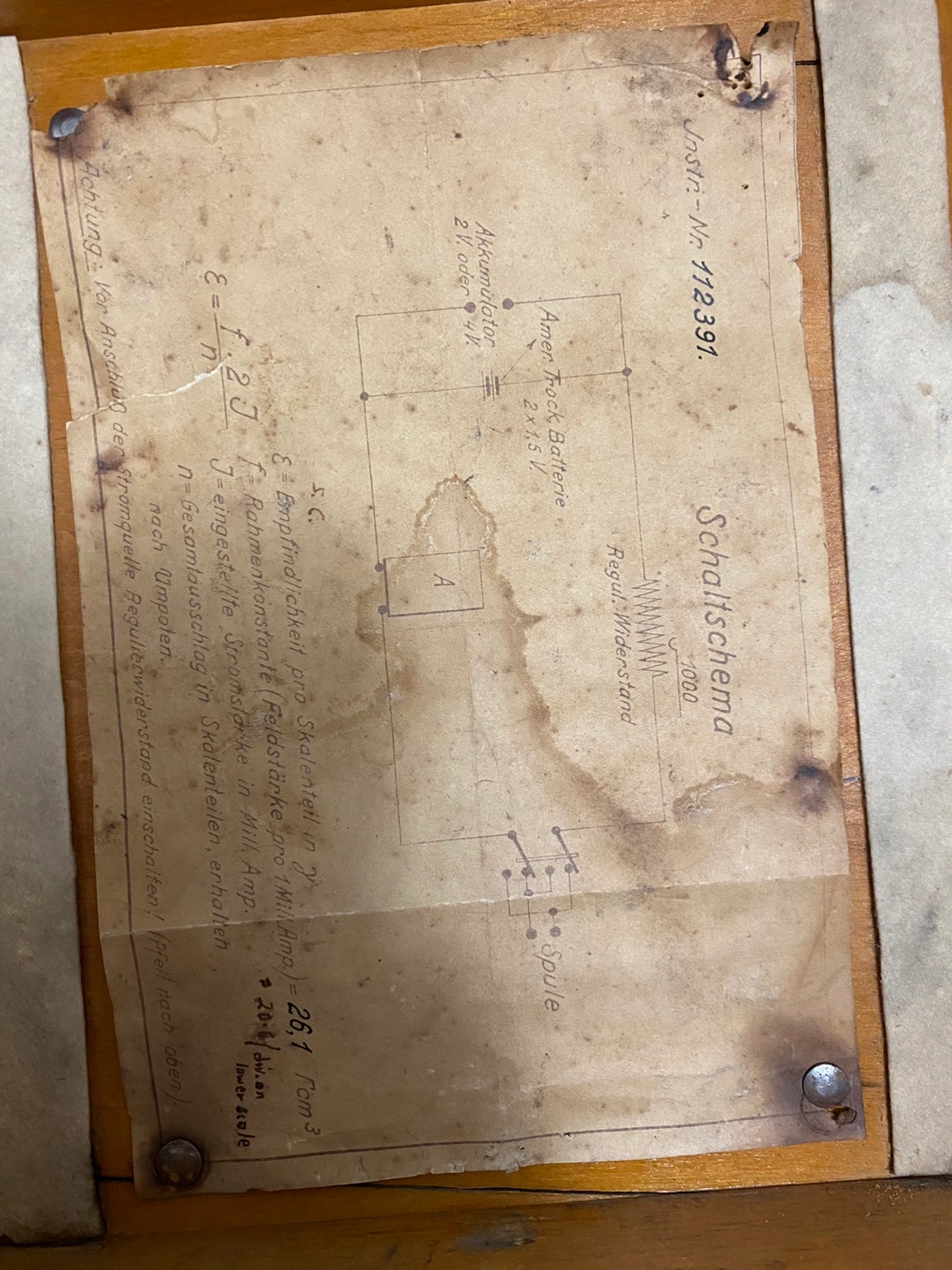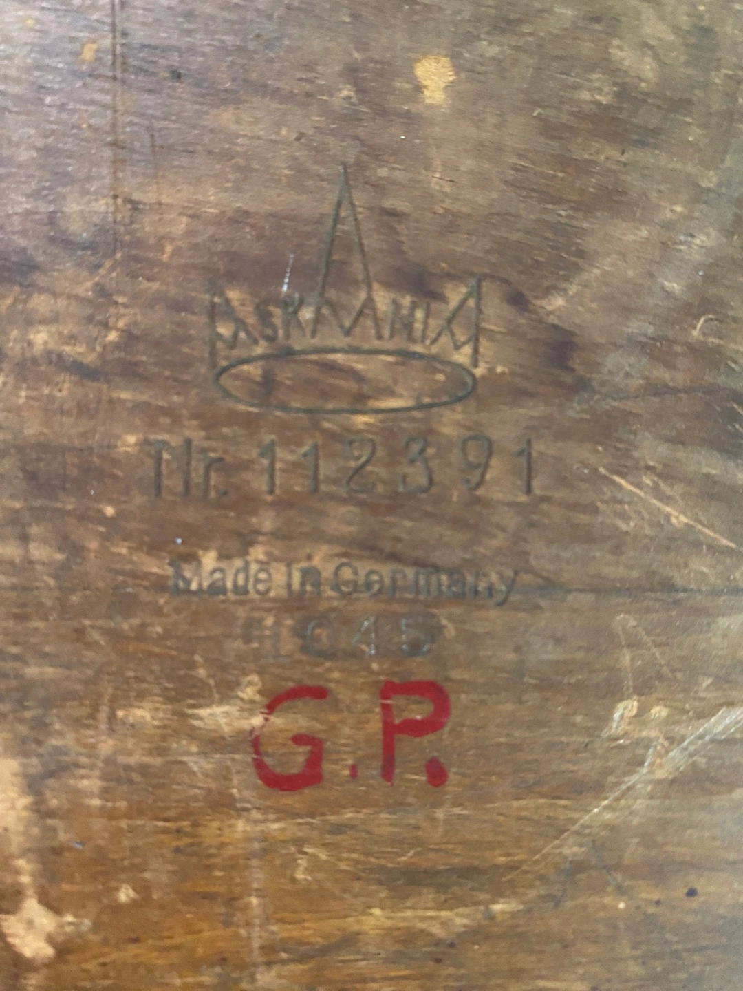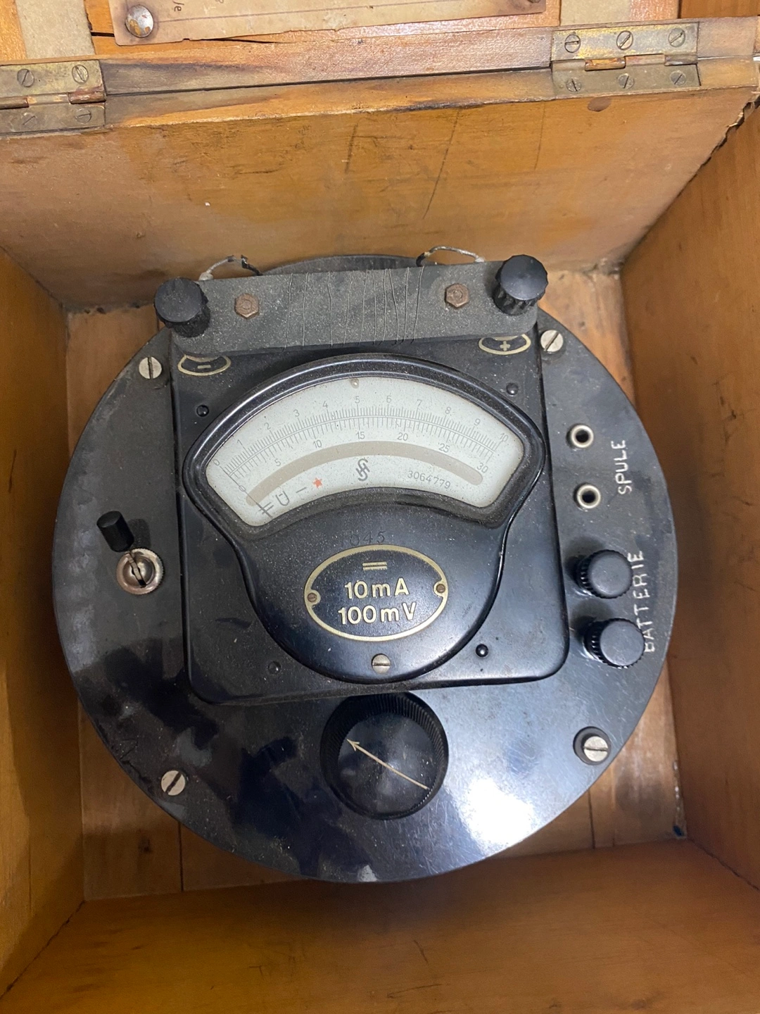 Antique Askania electrical meter. Wooden carrying case included. Made in Germany. Numbered 112391. Shows some wear consistent with age.