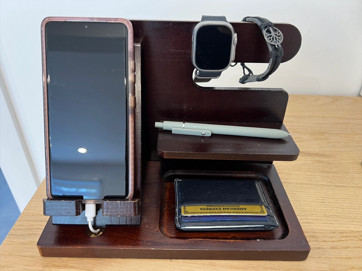 Keep your essentials in one stylish place! This all-in-one organizer features dedicated sections for your phone, wallet, watch, keys, glasses, fitness tracker, and more. Perfect for nightstands, dressers, or desks — no more searching for your things every morning. Say goodbye to clutter and hello to convenience with this sleek and practical setup!