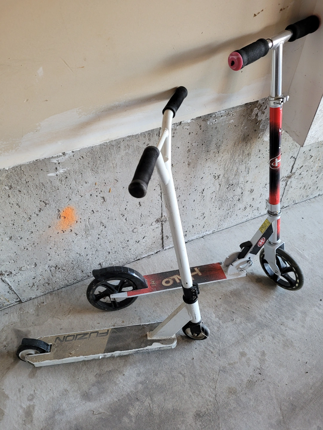 Two used scooters. One is a Halo, the other is a Fuzion. Good condition. Sold as is.