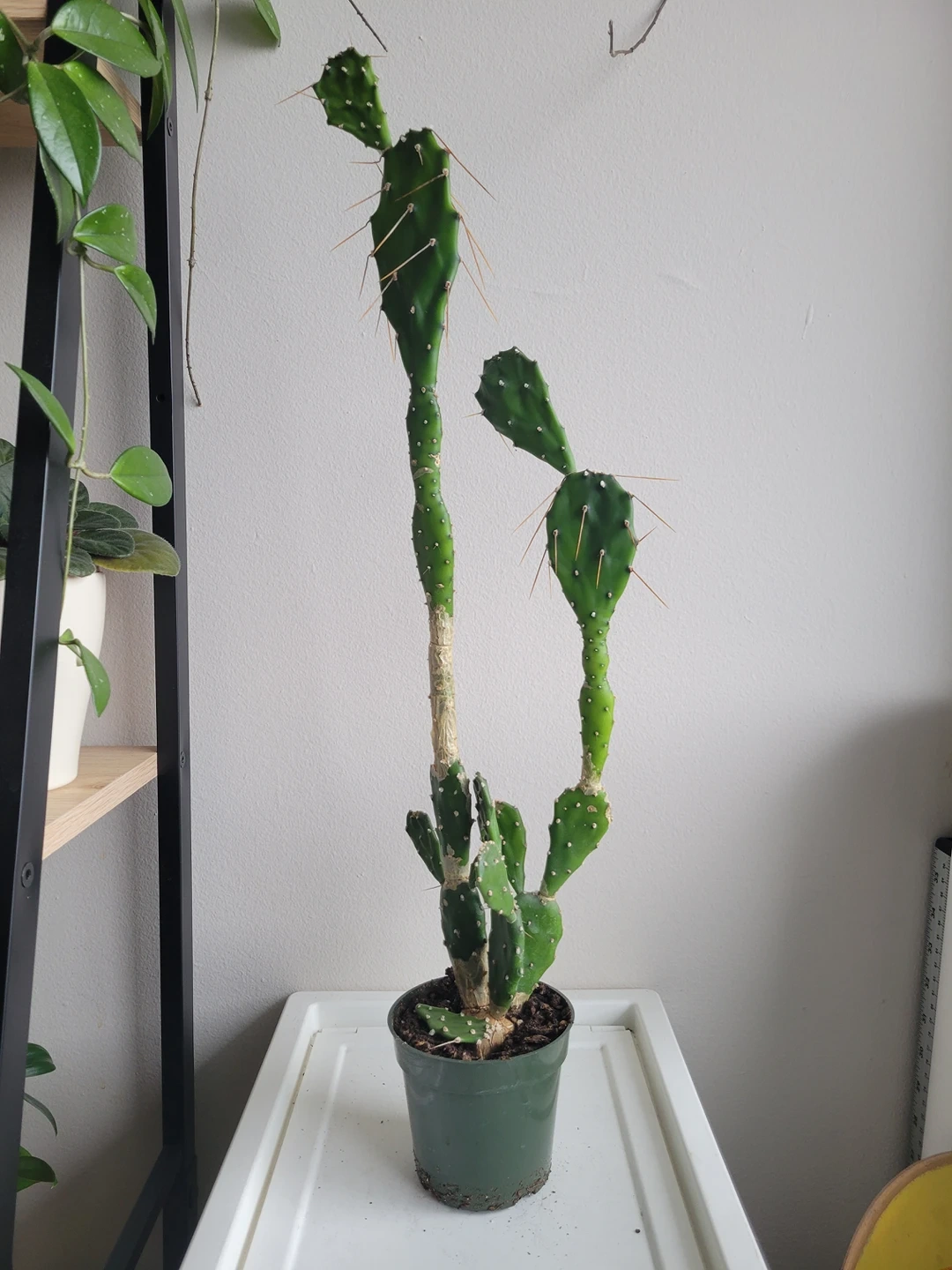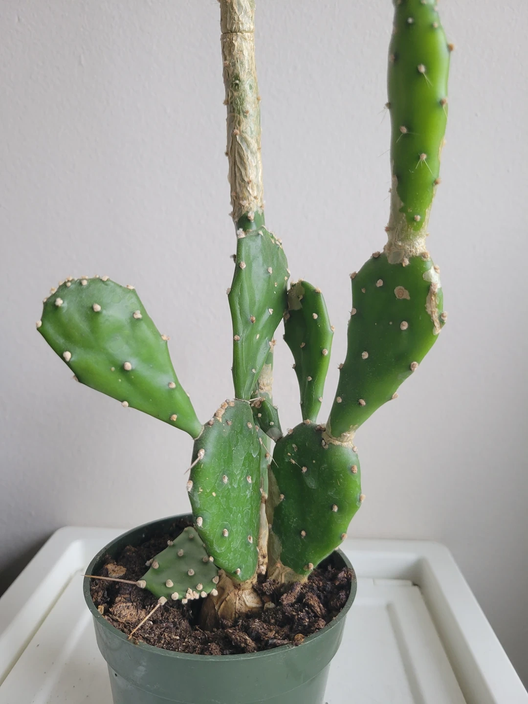 opuntia cactus in a 4 inch pot. 20 inches tall.