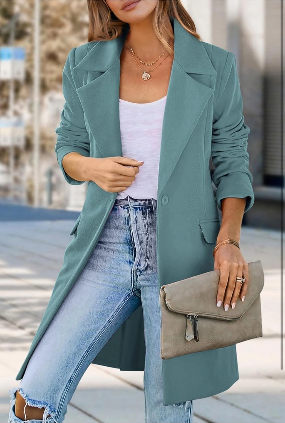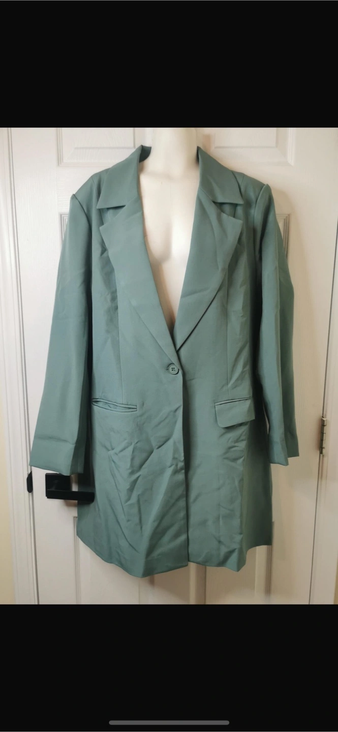 New! Retails for $70 Women's longline teal coat. Single-breasted button closure. Features a notched collar and side pockets. Long sleeves. Perfect for summer, winter, fall or spring. Mid-Length Blazer Jackets For Women Made Of High-Quality Polyester Blend Fabric And Designed With A Smooth Lining, Guaranteeing The Comfort And Durability While Improving The Overall Look And Feel. Single button closure. Two pockets. Long sleeves. Relaxed fit. Perfect for layering. Longline blazer, teal colour. Single button closure. Two pockets. Great for fall or spring.