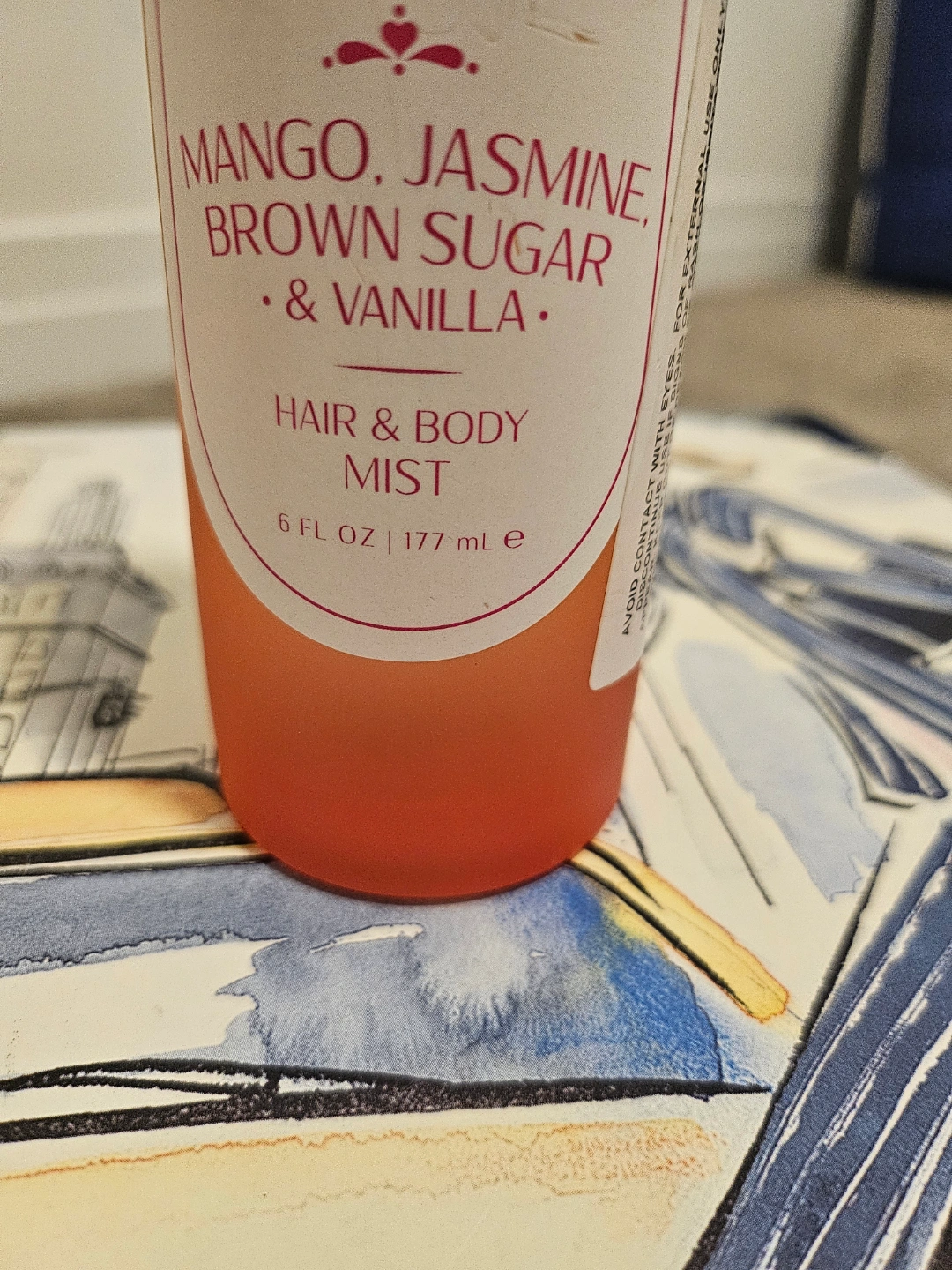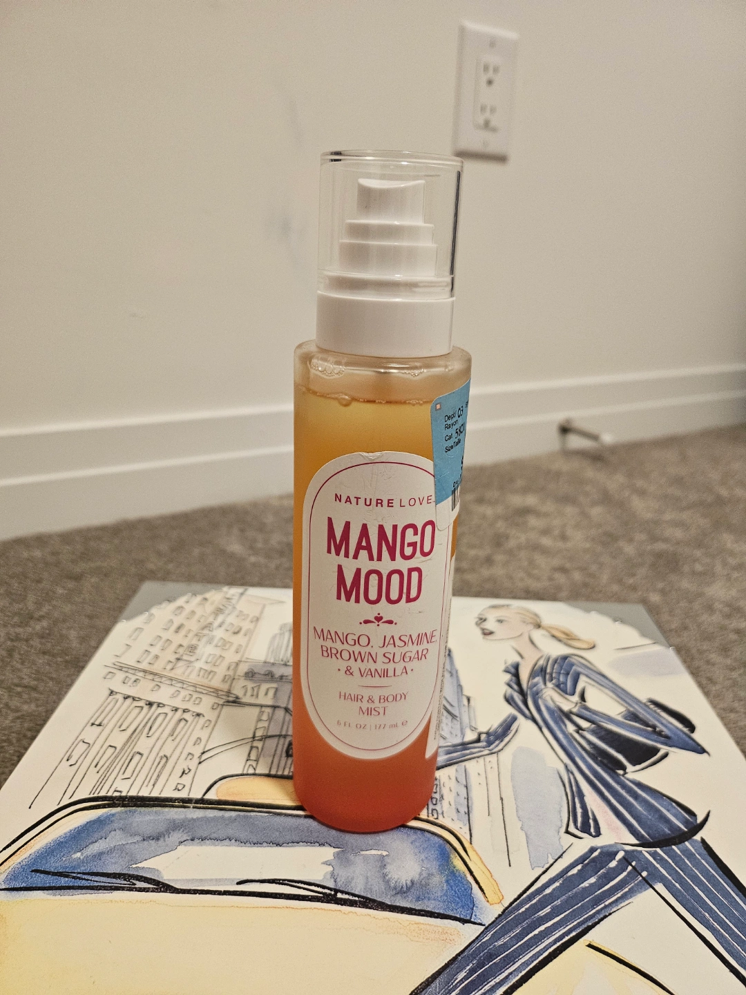 Lightly used bottle of Nature Love Mango Mood Hair & Body Mist. Mango, Jasmine, Brown Sugar & Vanilla scent. 6 fl oz / 177 ml. Great for hair and body.