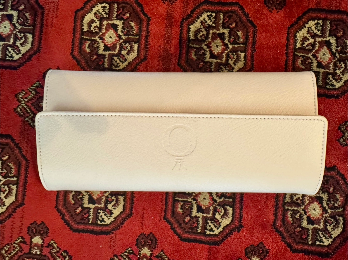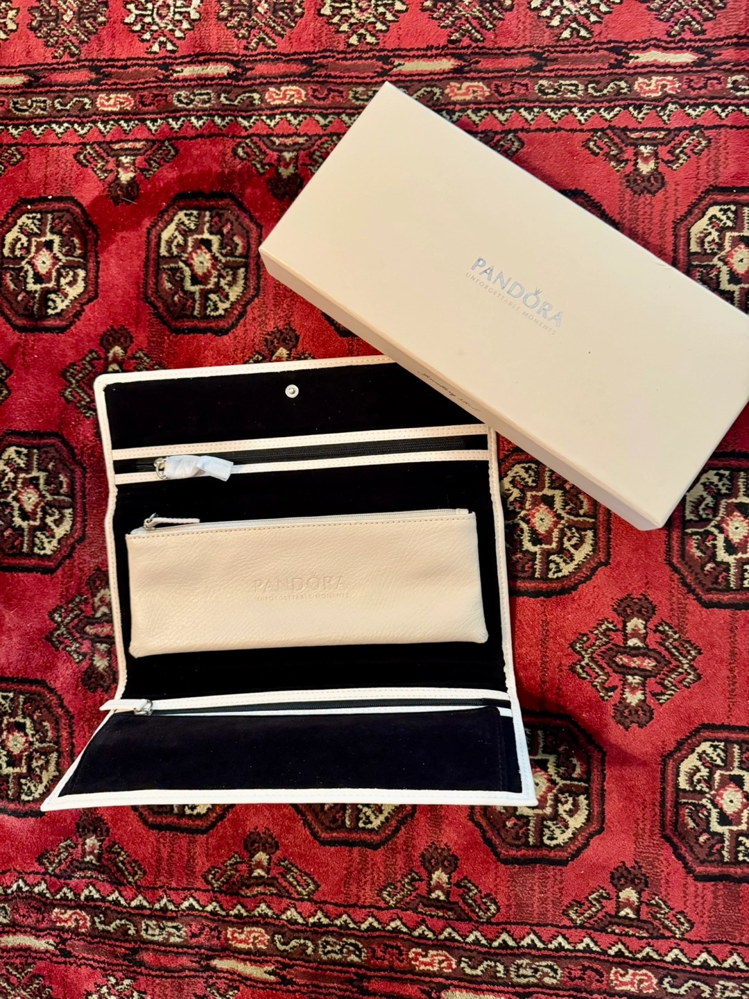 Beautiful light pink leather Pandora jewellery case. Soft interior. Perfect for travel. Includes a smaller zipped pouch.