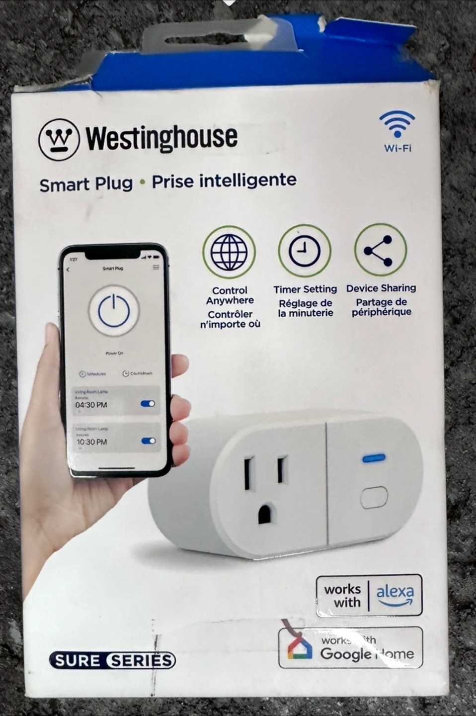 New, in box. Smart plug, easy setup. Control anywhere, timer setting, device sharing. Works with Alexa and Google Home.