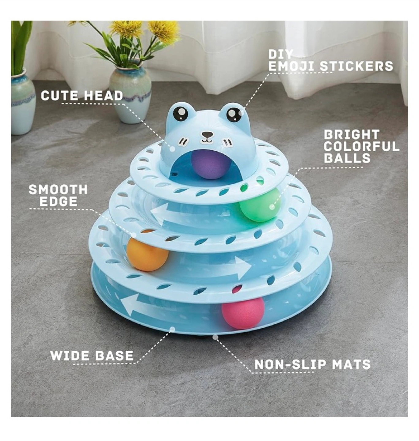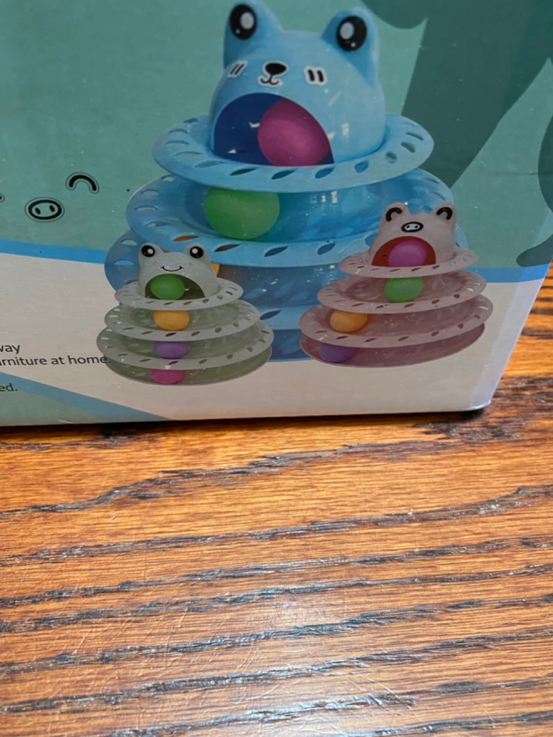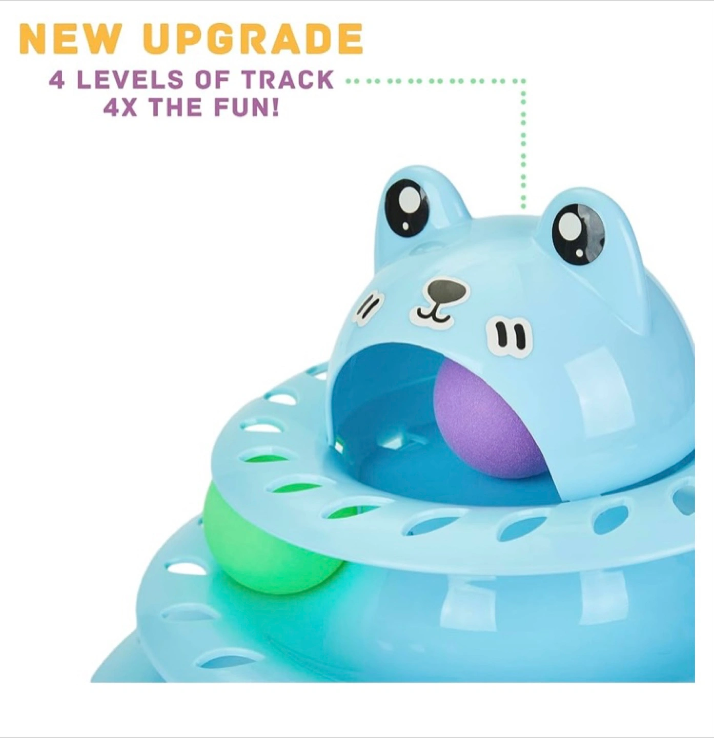 Four-level track cat toy. Includes four colourful balls. Suitable for kittens and larger cats. Fun puzzle for indoor cats. Never Used Cash Only