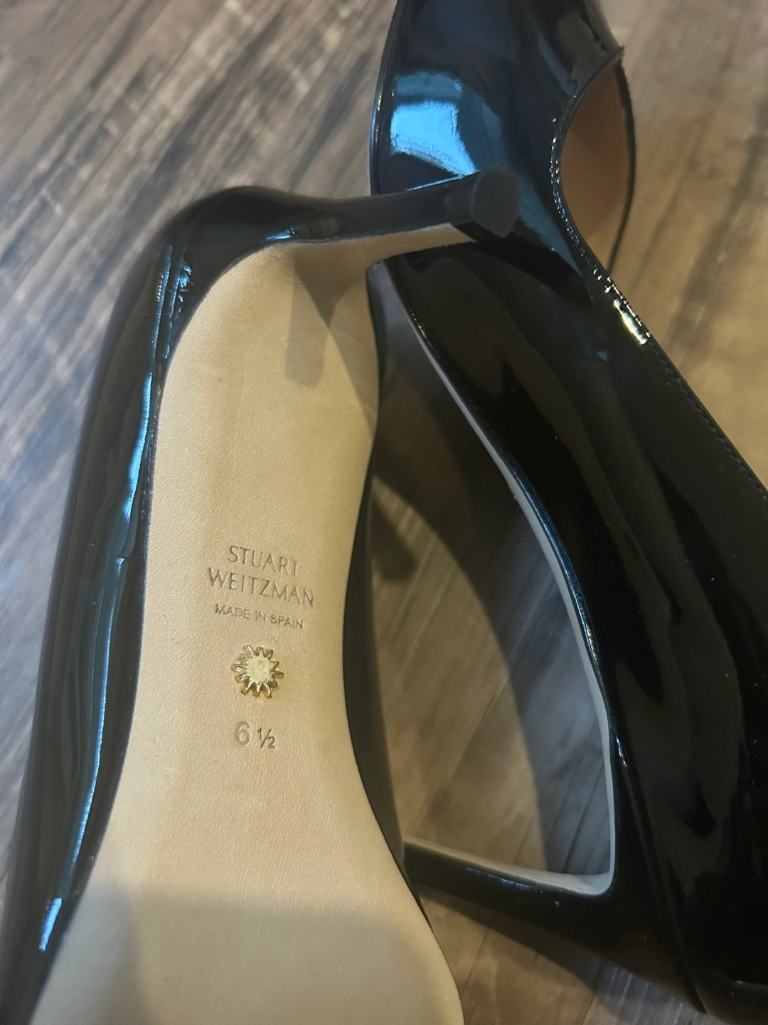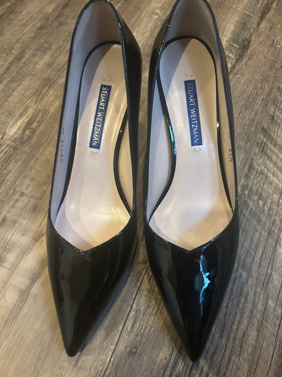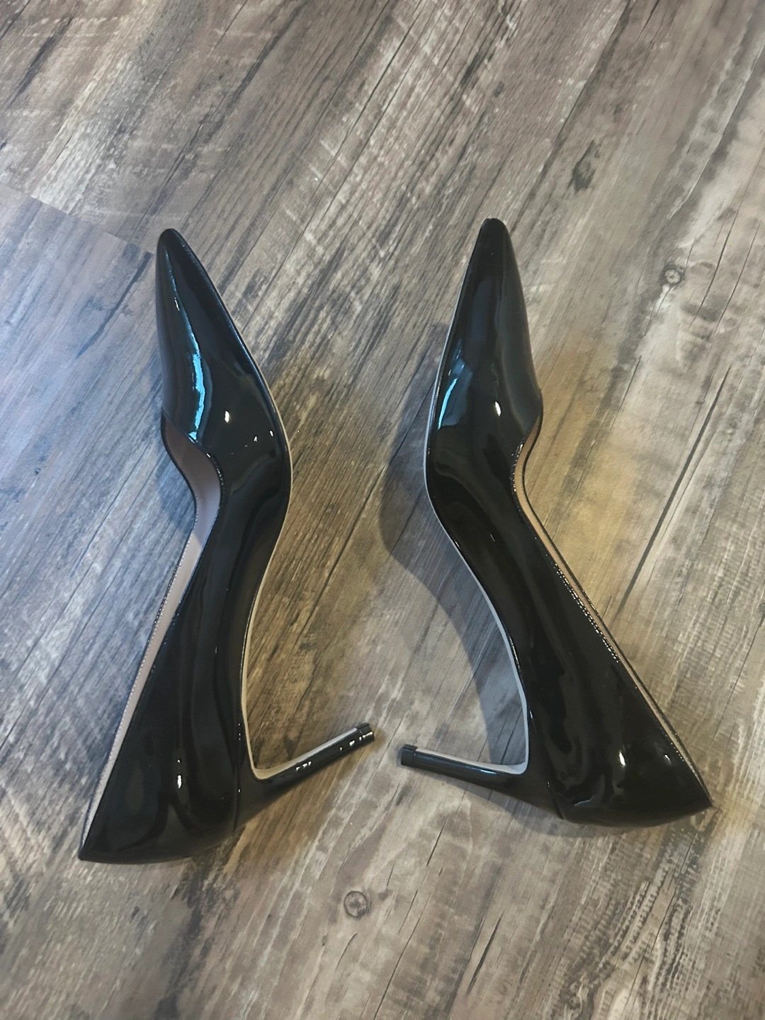 Stunning black patent leather pumps. Pointy-toe style. High heels. Excellent condition. Size 6.5M. Made in Spain.