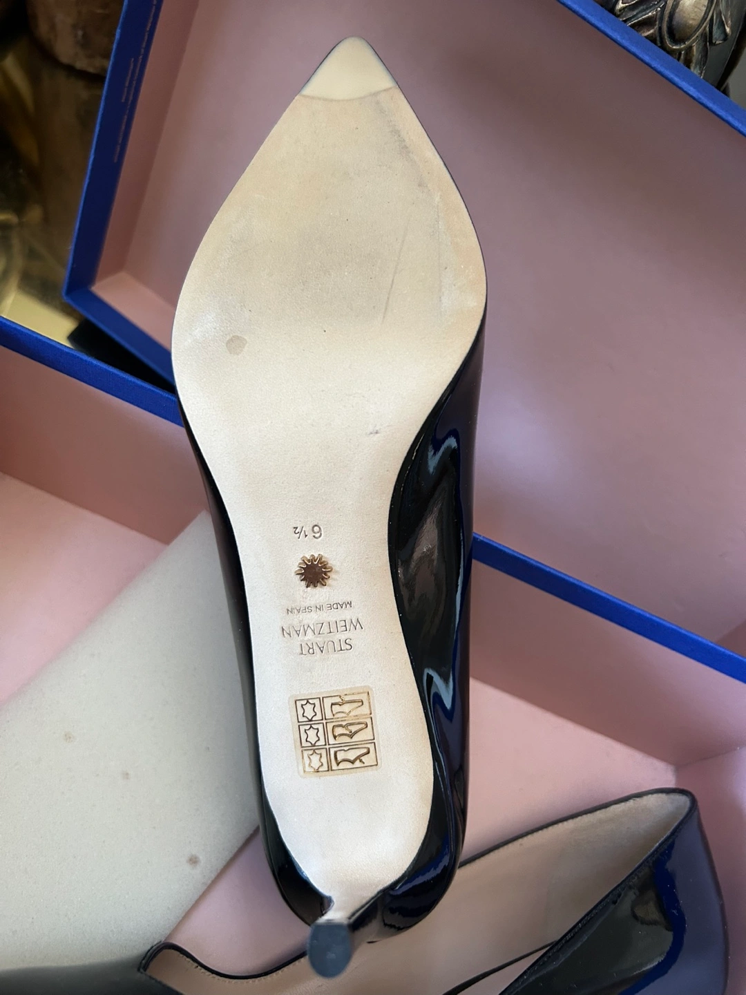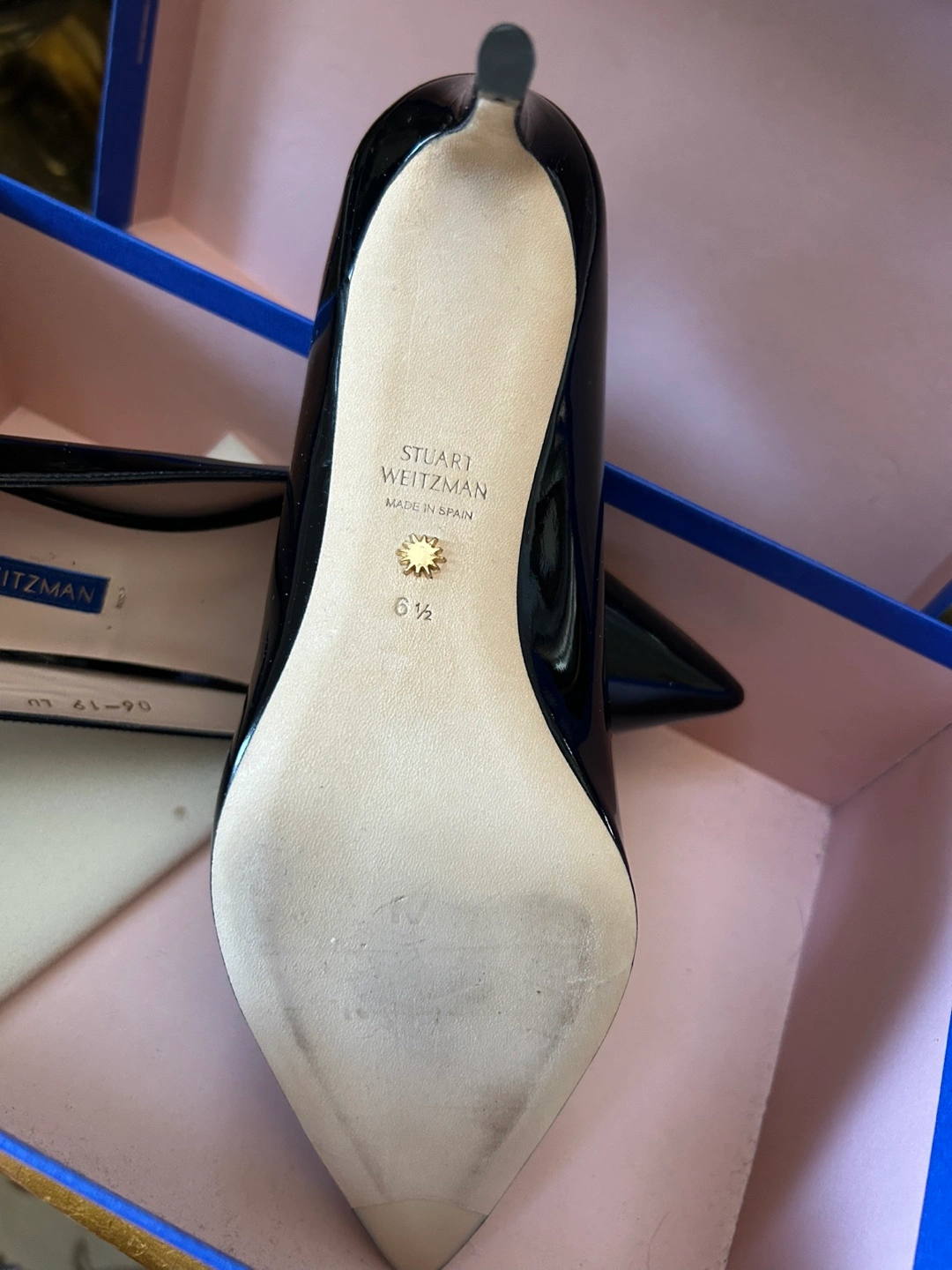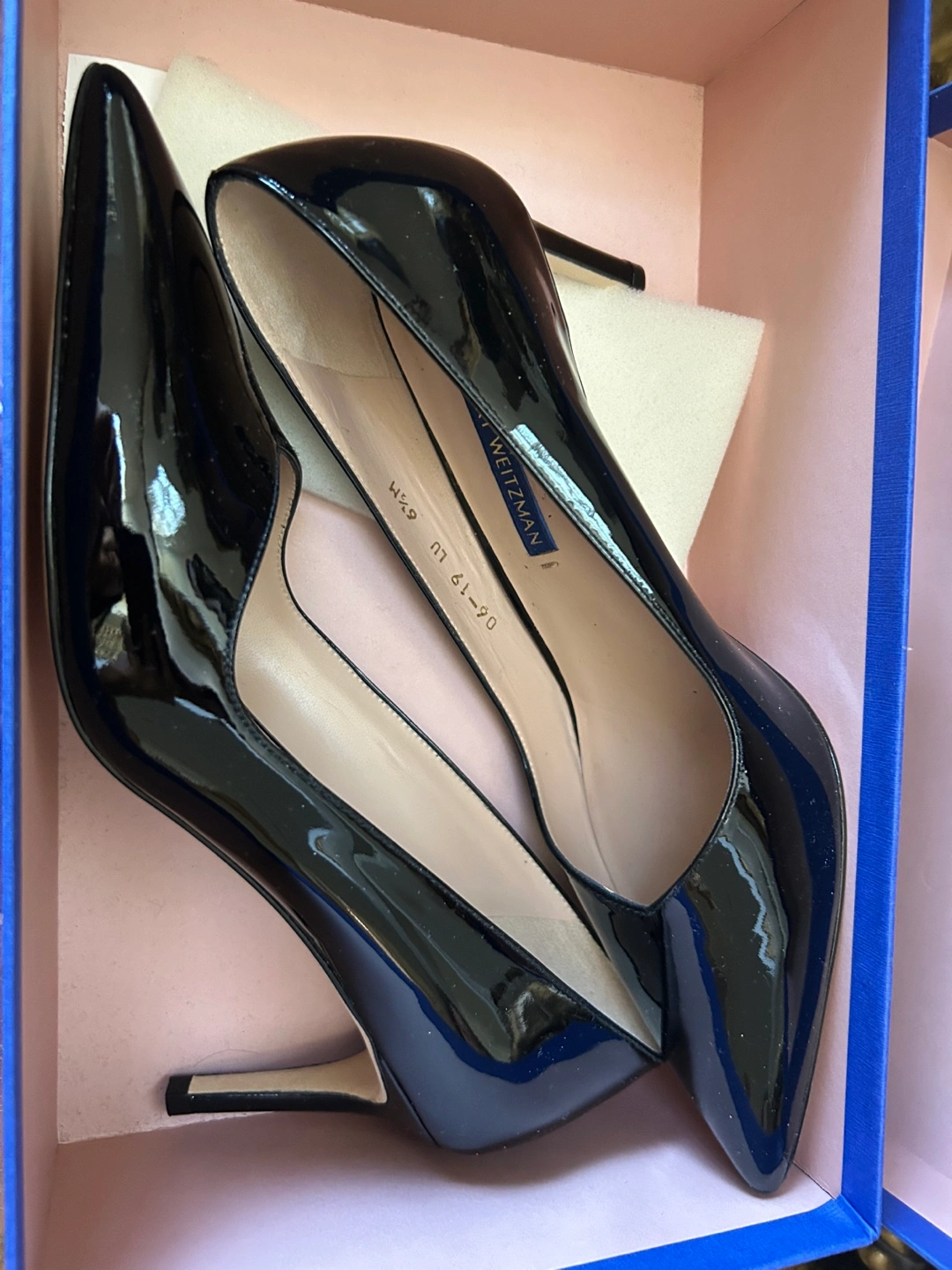 Stunning black patent leather pumps. Pointy-toe style. High heels. Excellent condition. Size 6.5M. Made in Spain.