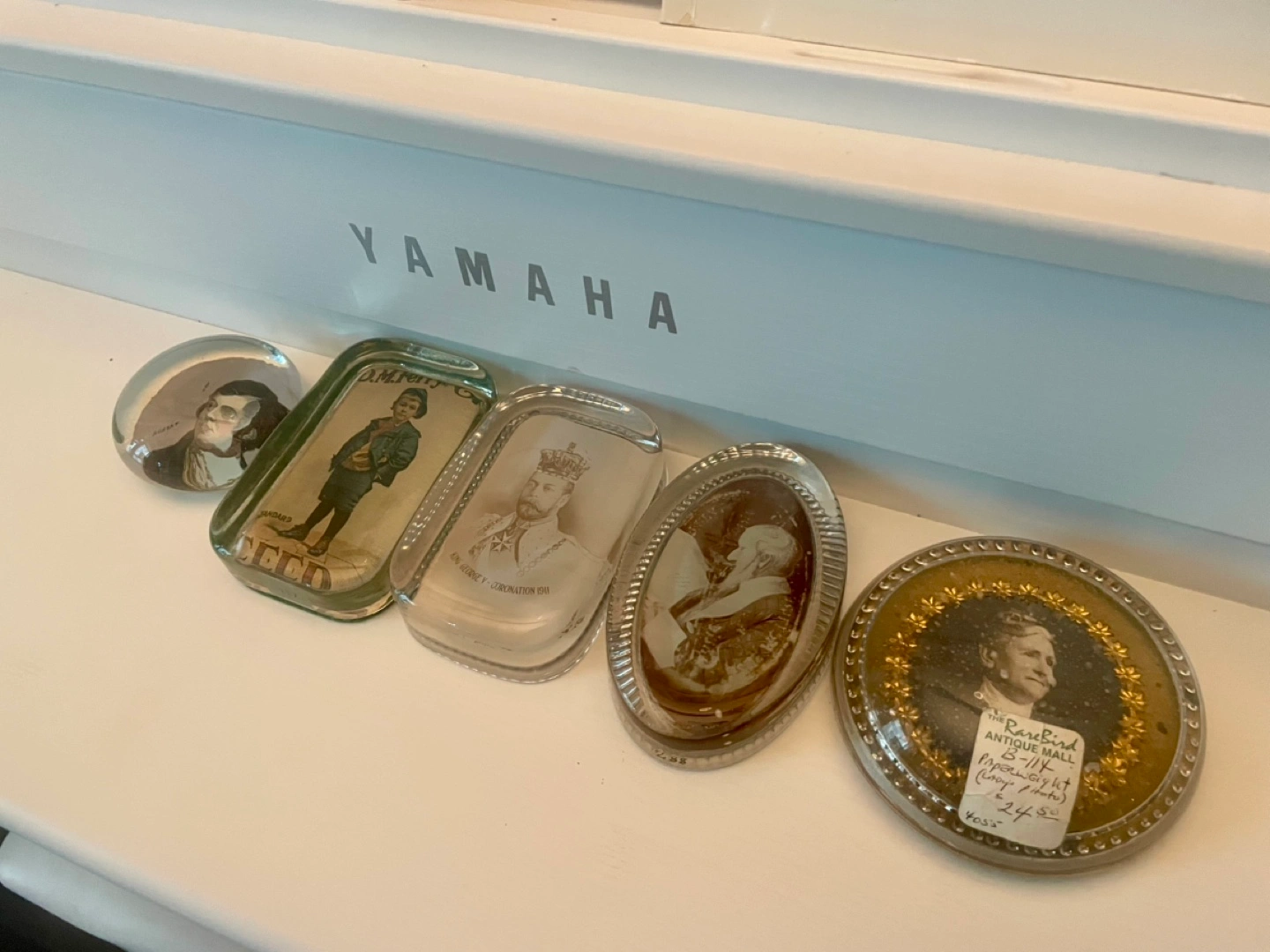This charming collection of vintage and antique paperweightsspan a variety of styles, formats, and historical subjects. They’re all domed glass or inset-style pieces, typical of the late 19th to early 20th centuries, often used for both decorative and commemorative purposes. $25 each, $110 for the whole lot. Pick up around Sherbourne/ Wellesley Could ship/ deliver for a fee