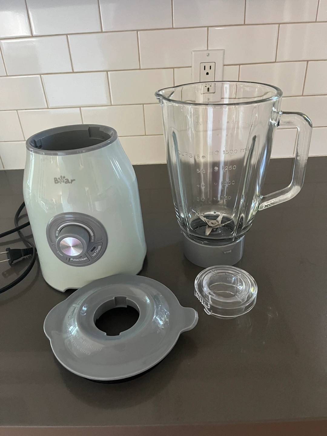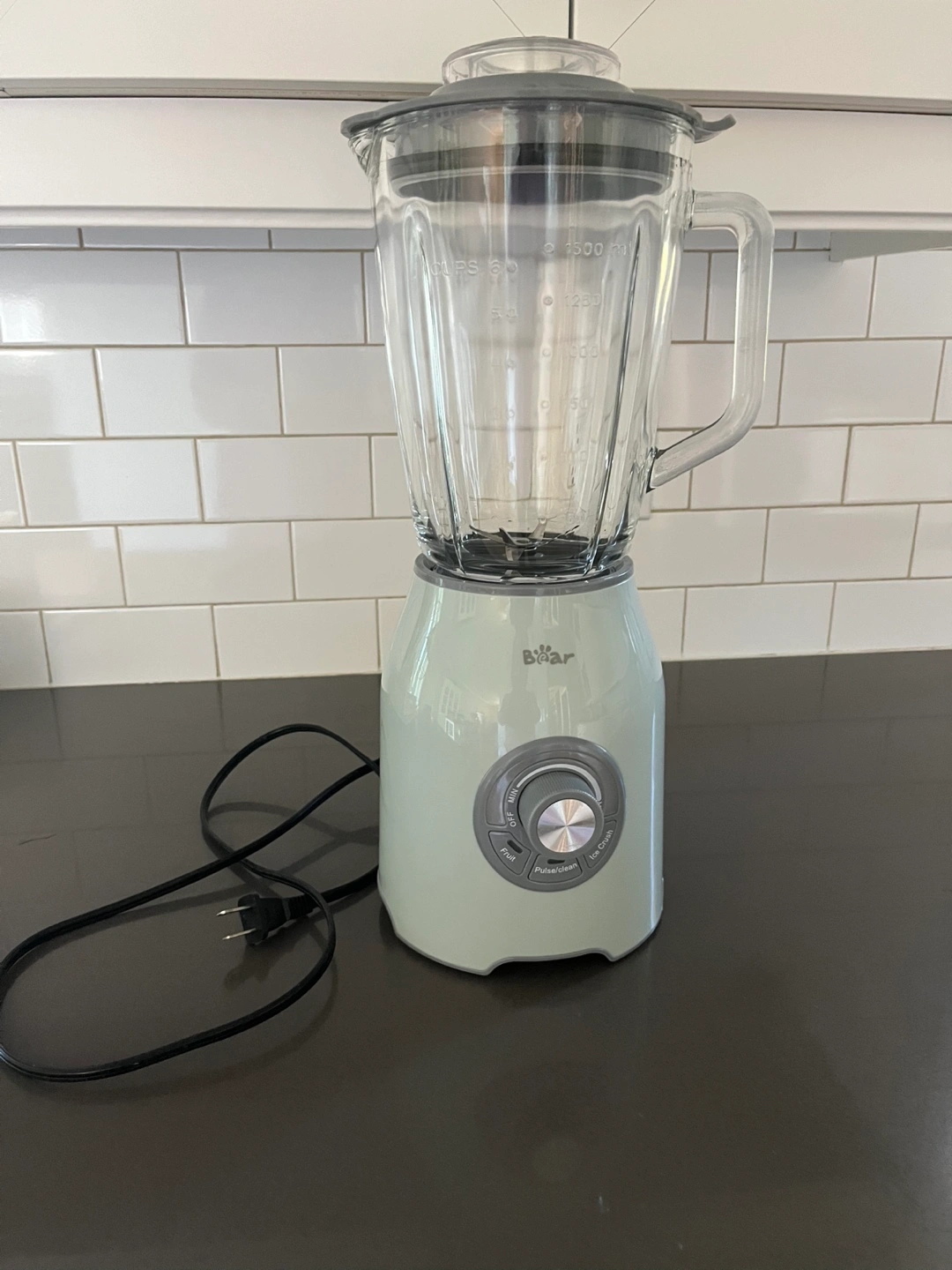 Pick up in Utopia, Bear Smoothies Blender, mint green. 51oz glass jar that easily locks in. Has 3 buttons for which function you want to use and has a speed knob.
